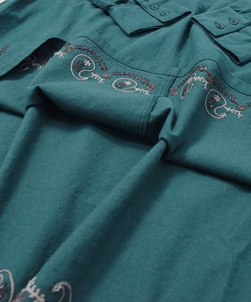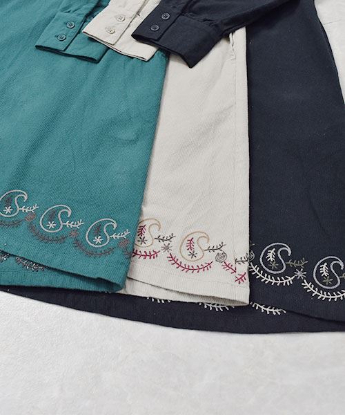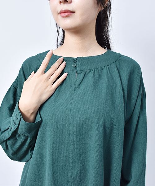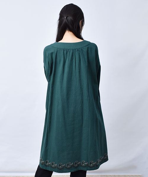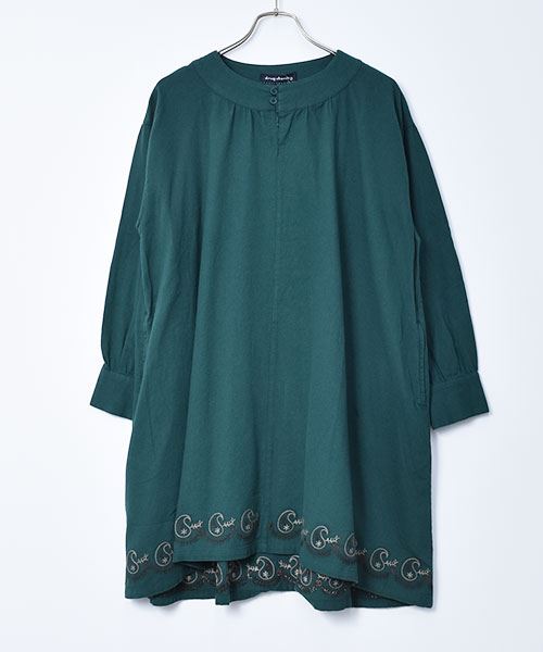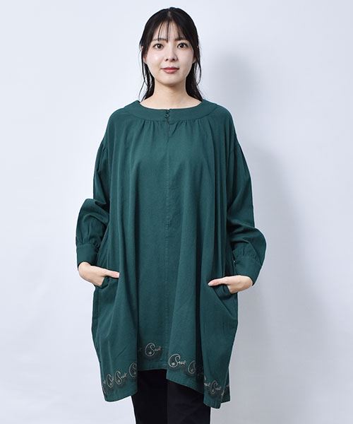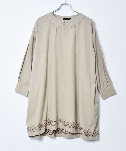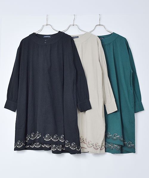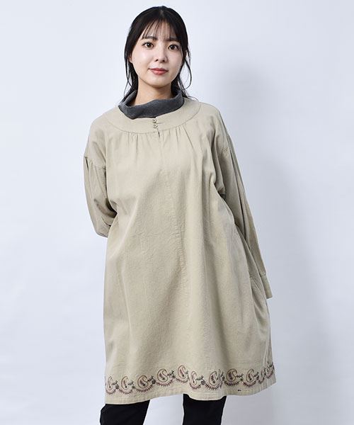 drug store's ピケシャンブレー起毛 衿ぐり 裾刺繍 ギャザー チュニック