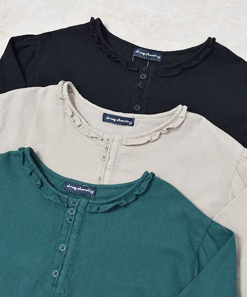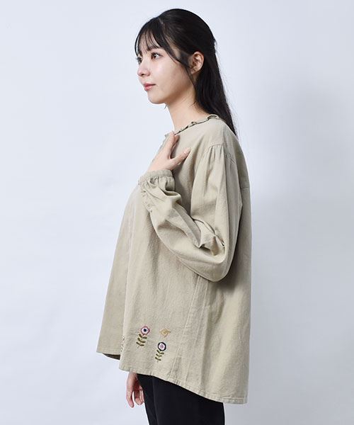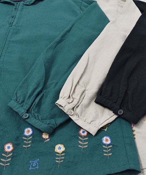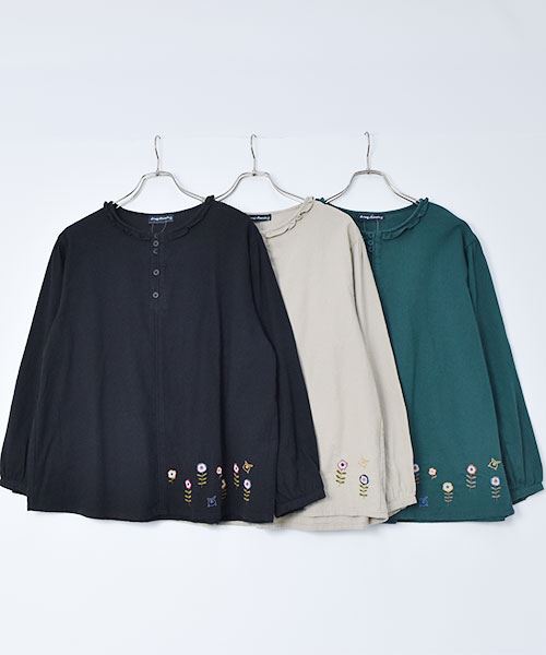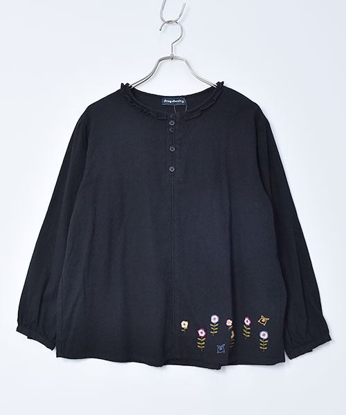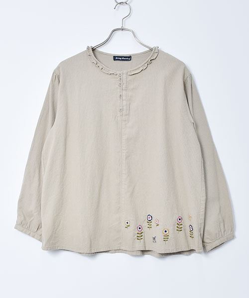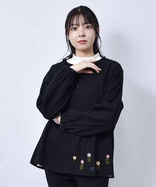 drug store's ピケシャンブレー起毛 フリル衿 花刺繍 ブラウス