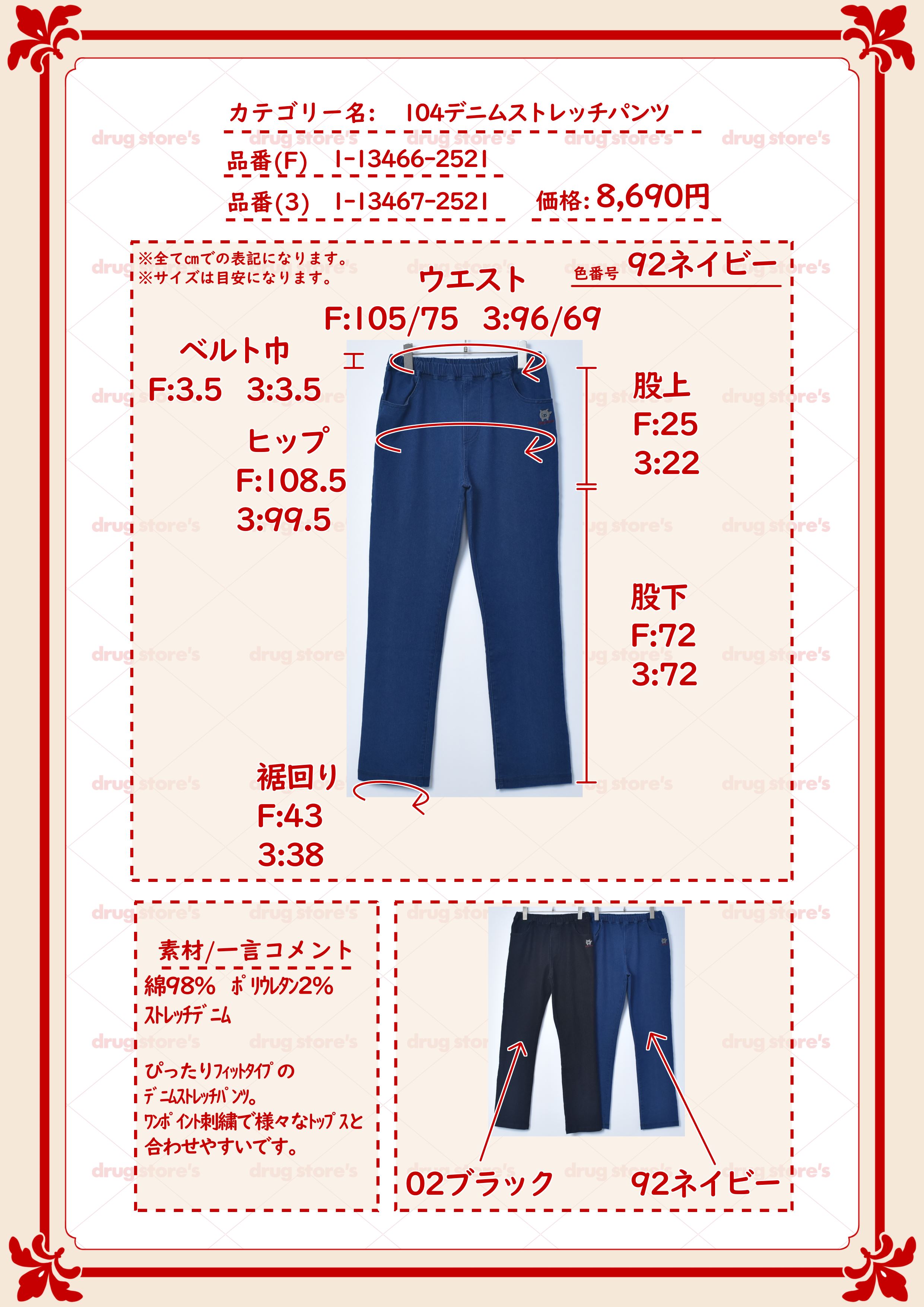 drug store's 刺繍 ストレート すっぽり ストレッチデニムパンツ