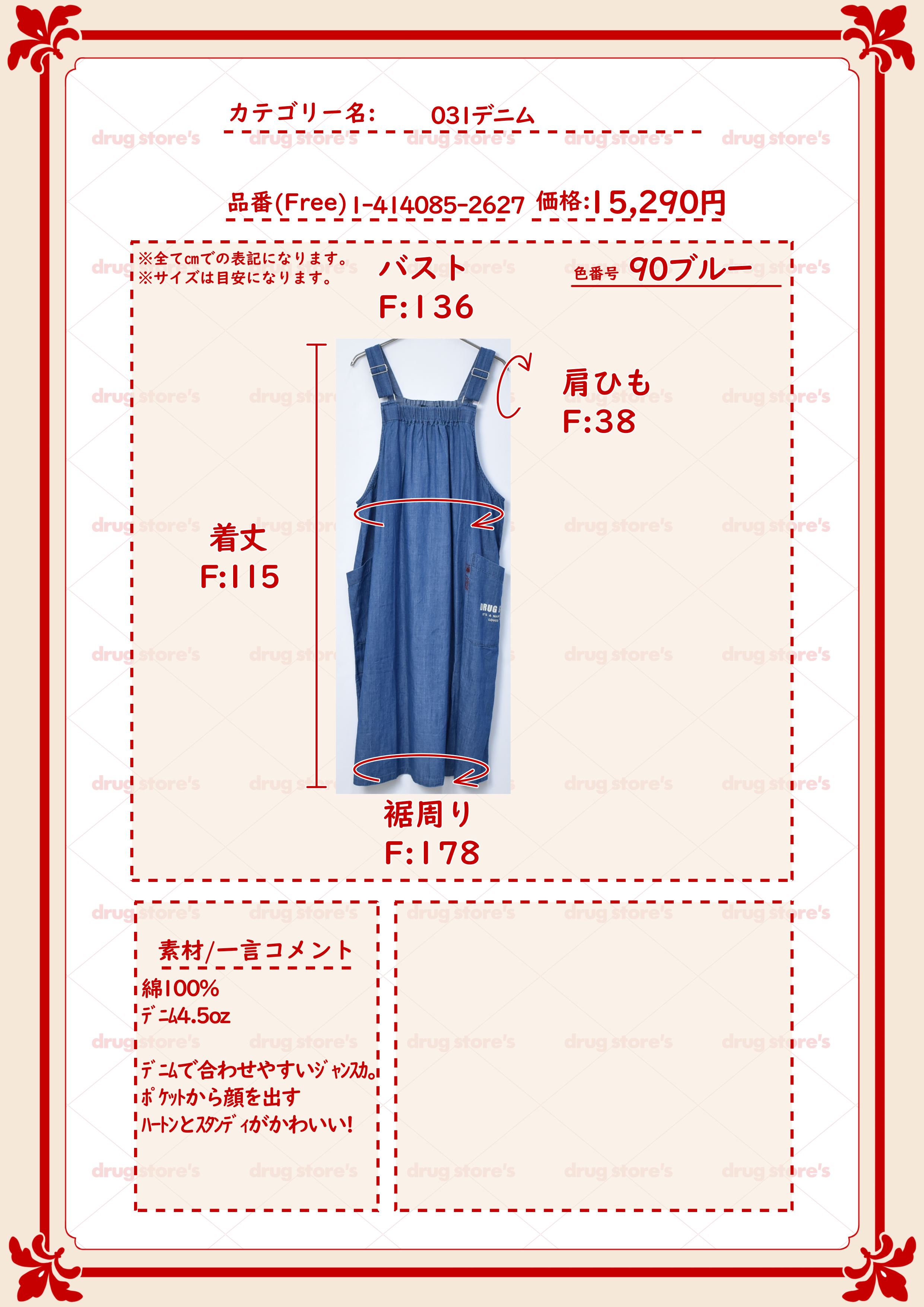 【ジャンスカ】 ひょっこり BIGポケット デニム ジャンスカ