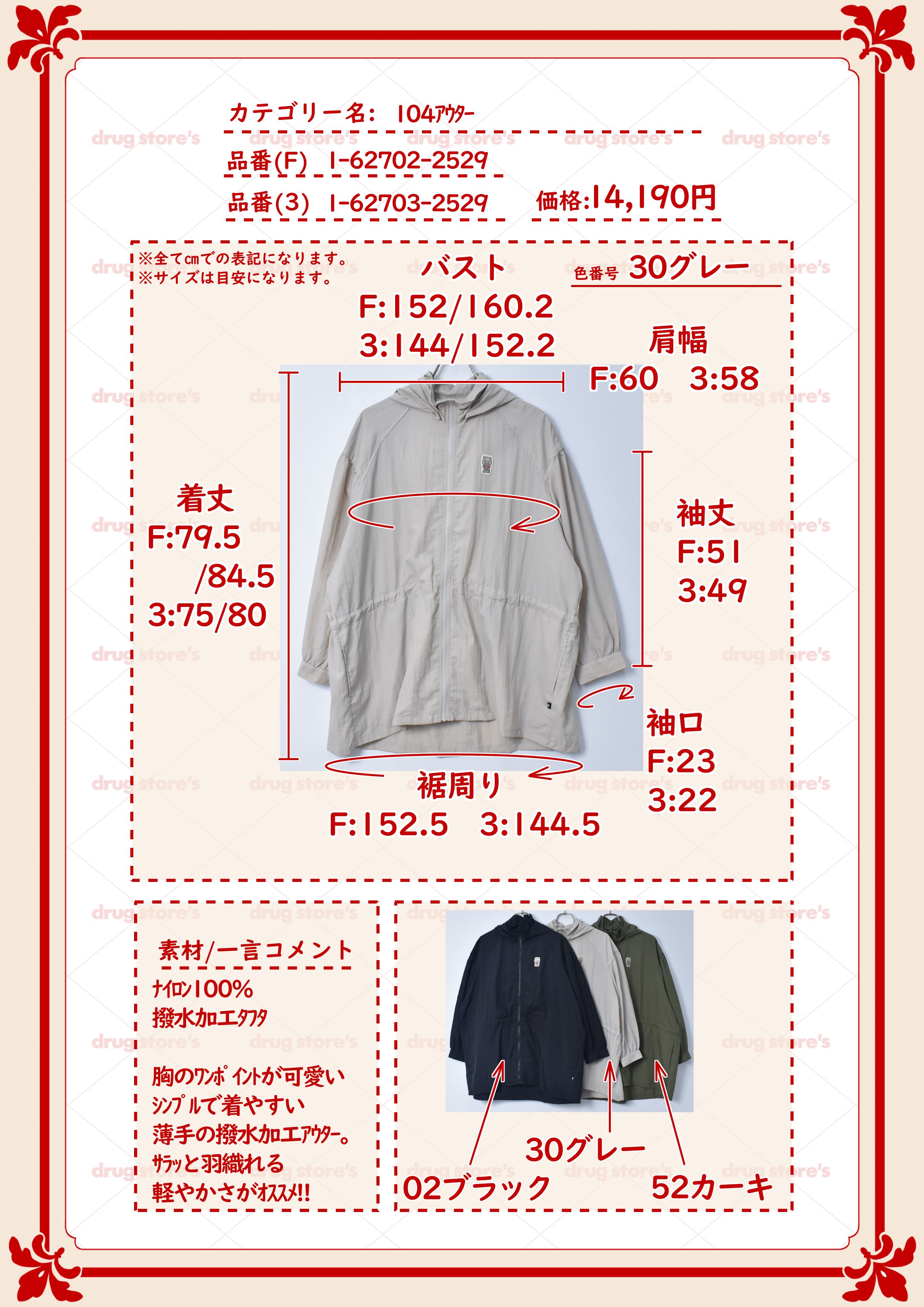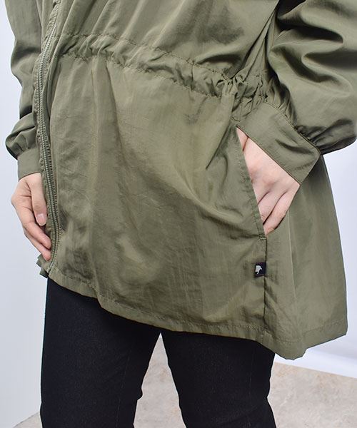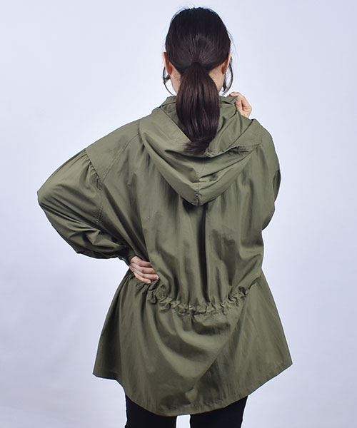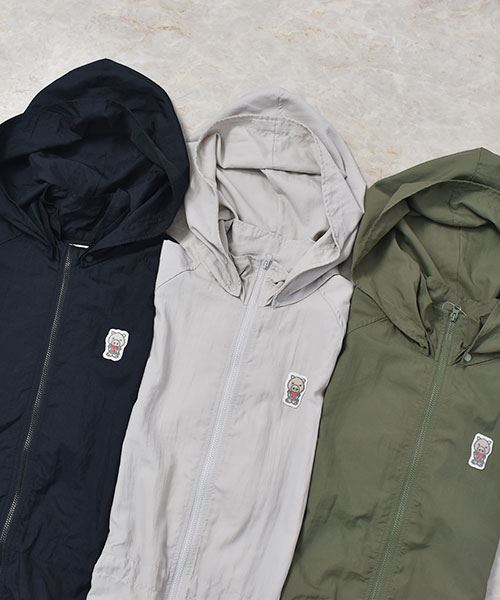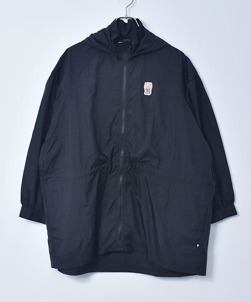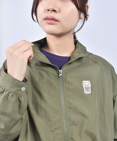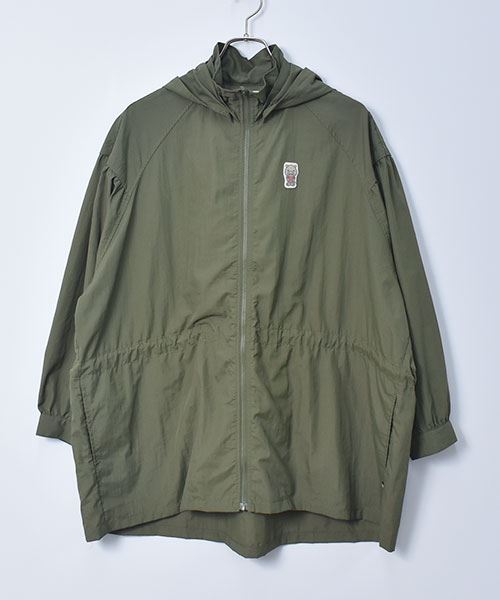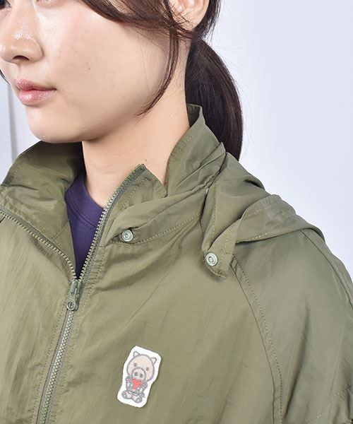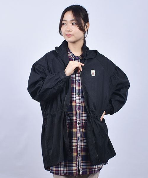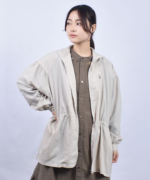 drug store's ブタワッペン 取り外しフードつき 袖ギャザー 撥水加工 ジャケット