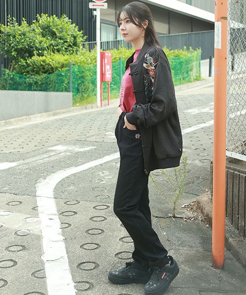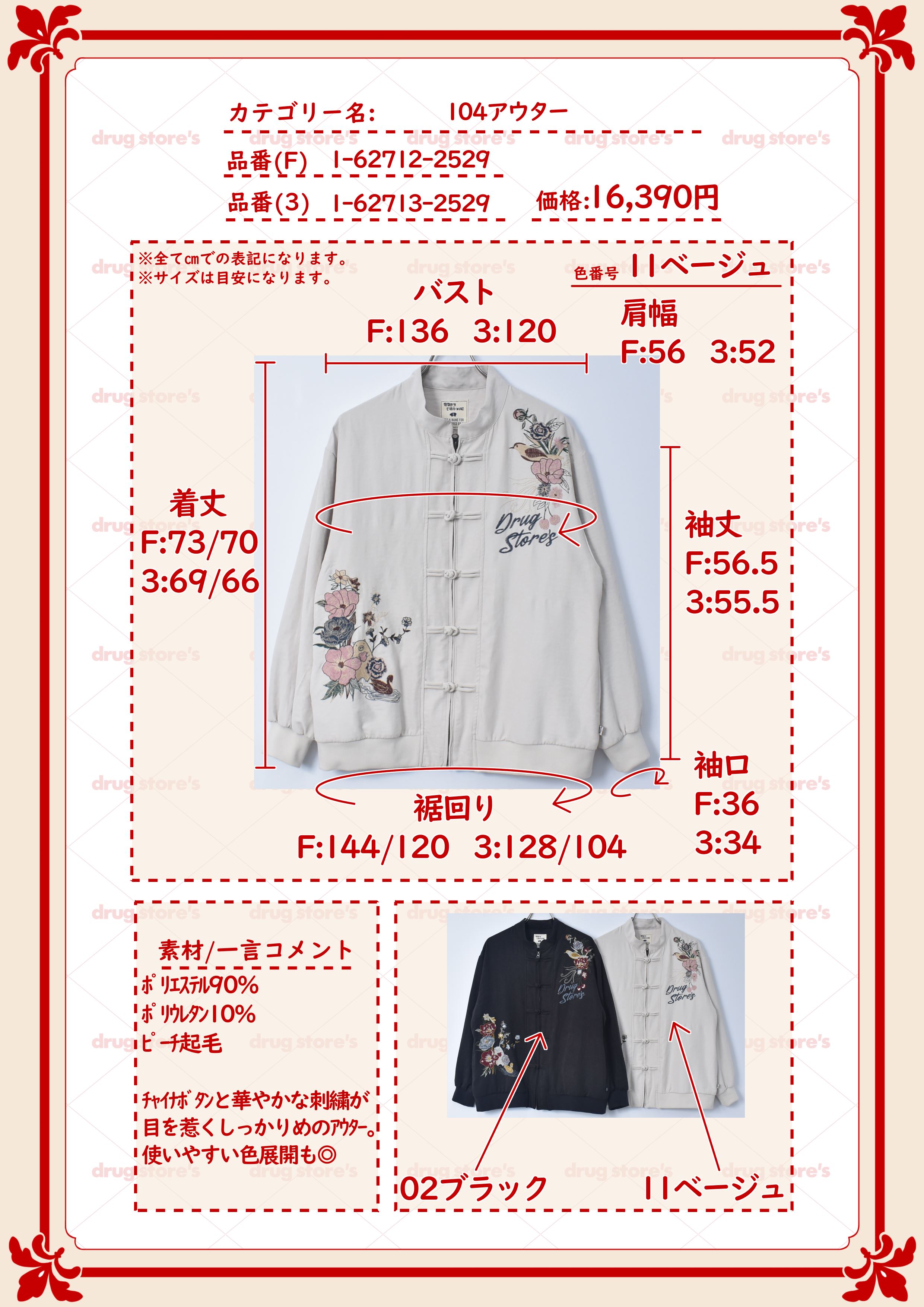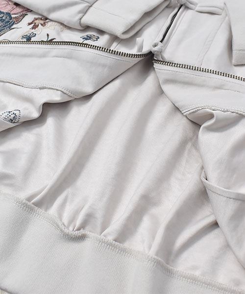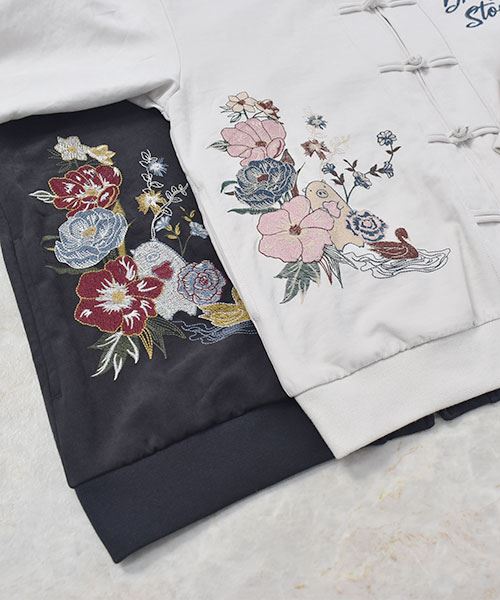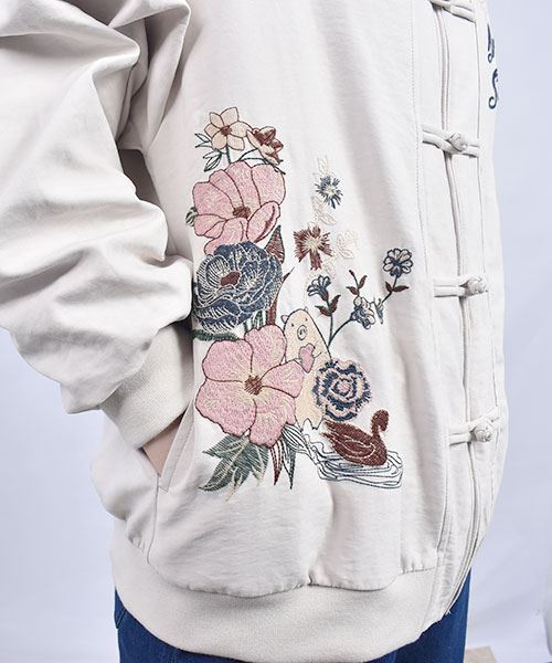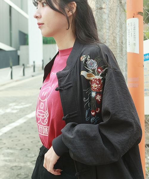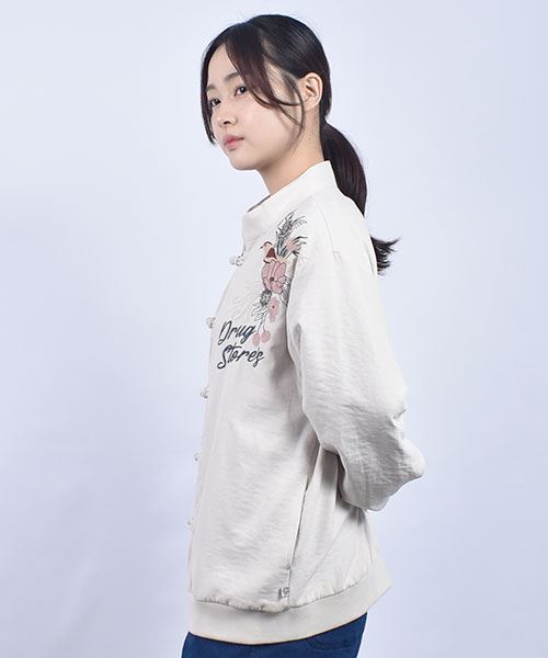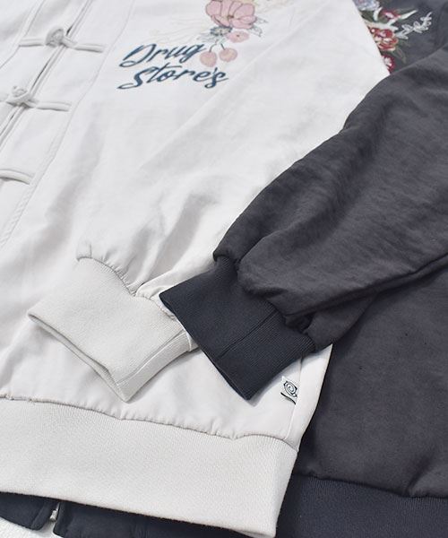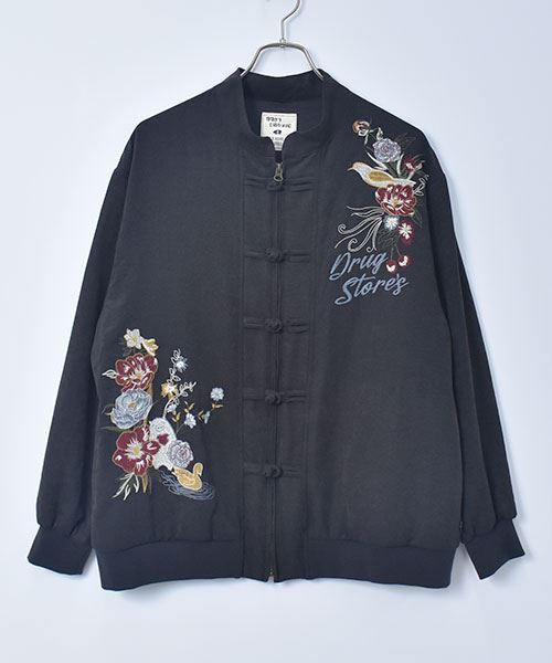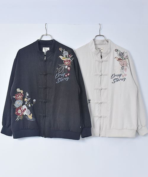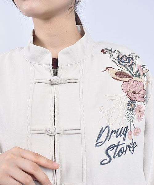 drug store's ピーチ起毛 花&ハートン刺繍 チャイナボタンつき ブルゾン