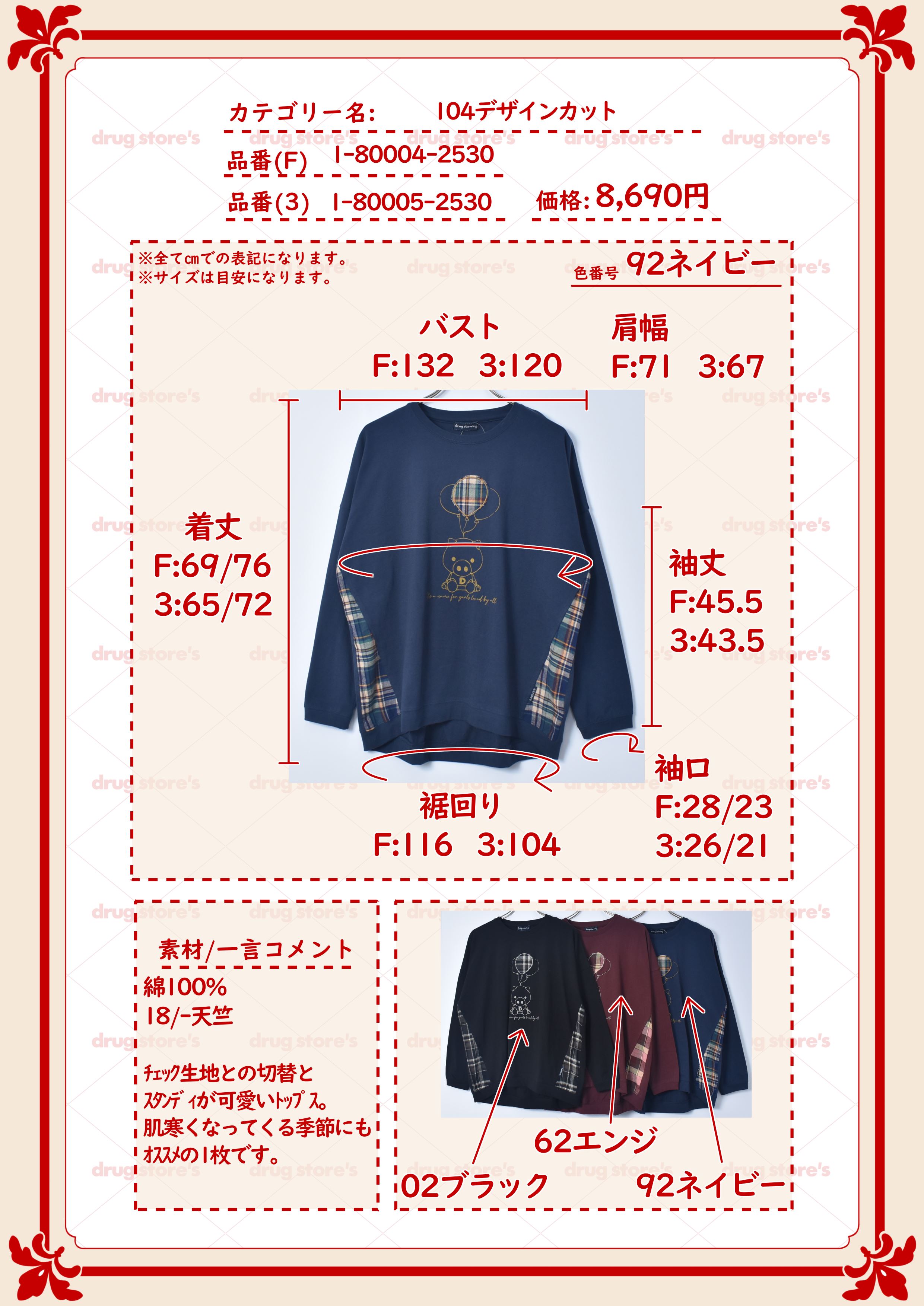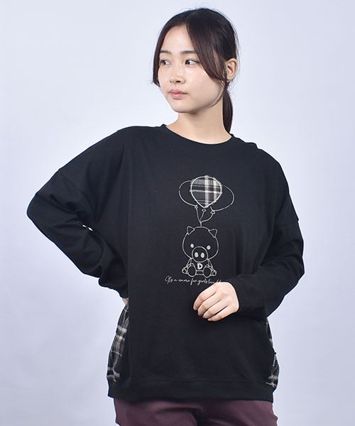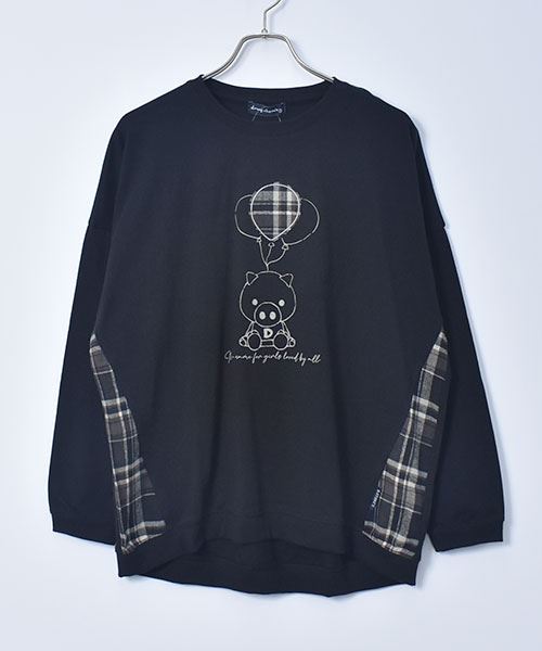 drug store's 18/-天竺 ブタバルーンプリント&アップリケ 長袖 BIGT