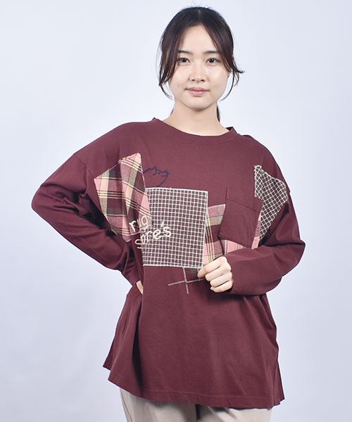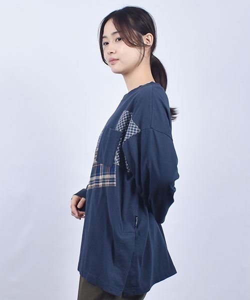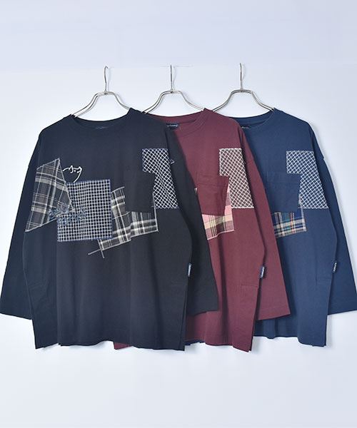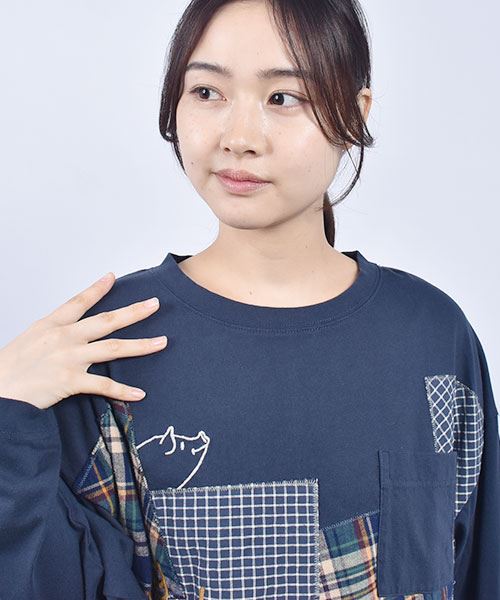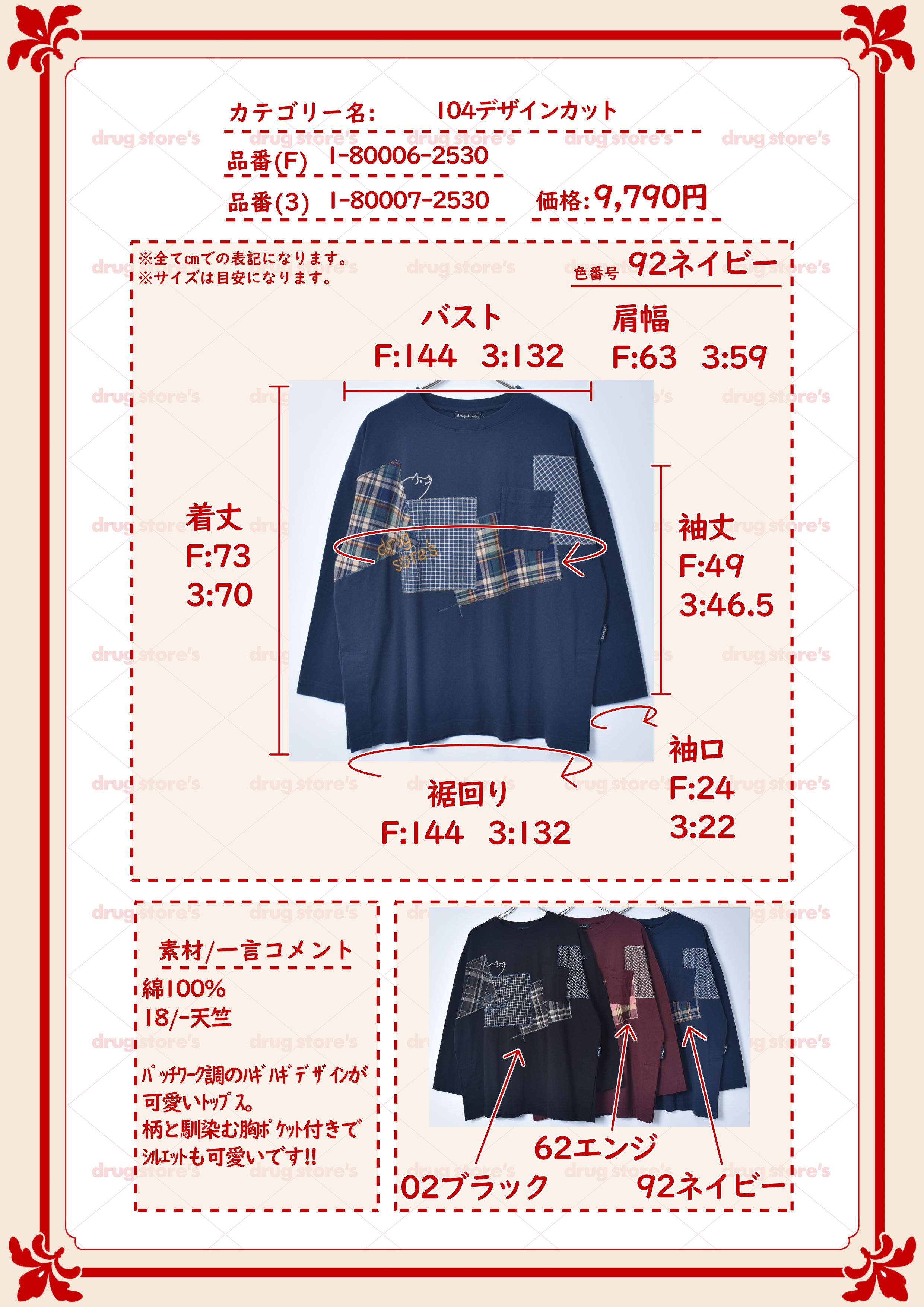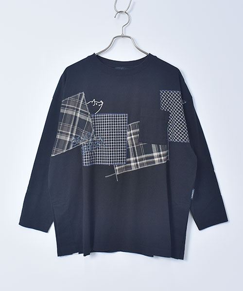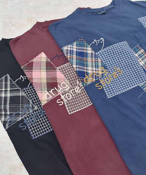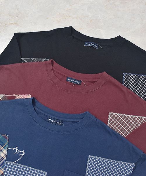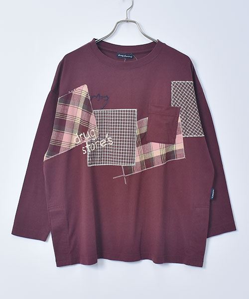 drug store's 18/-天竺 刺繍&アップリケ ロングスリット 丈長 T