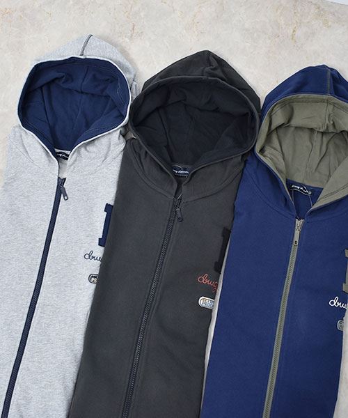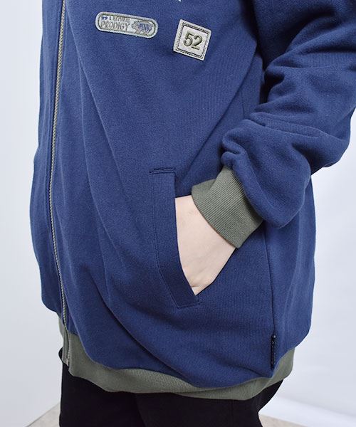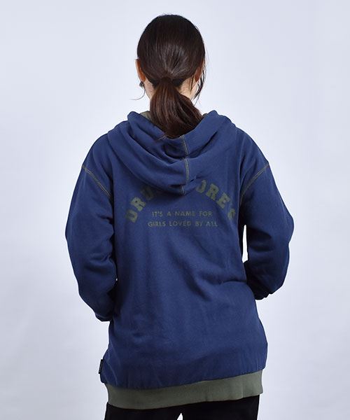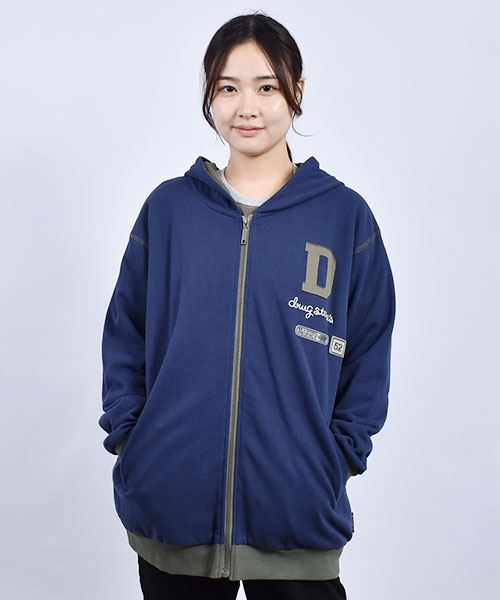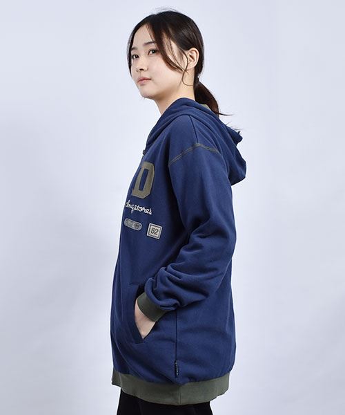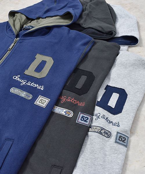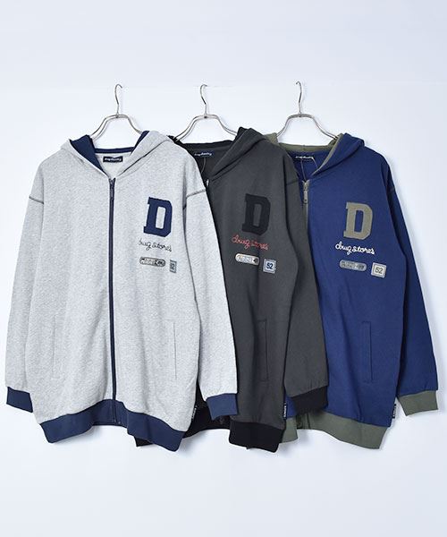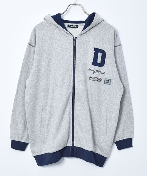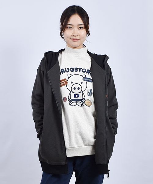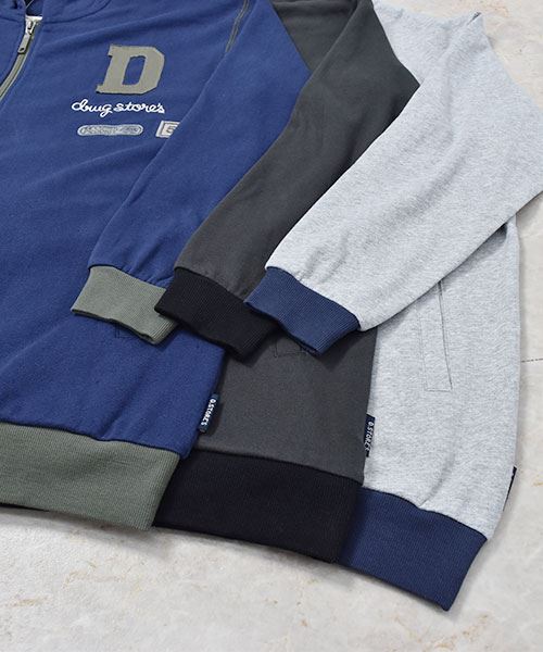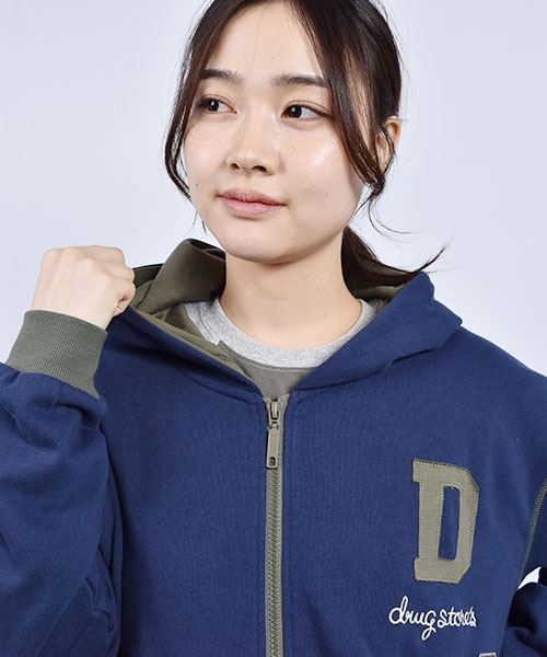 drug store's 裏毛 アップリケ&フェルトワッペン 配色 リブ パーカー