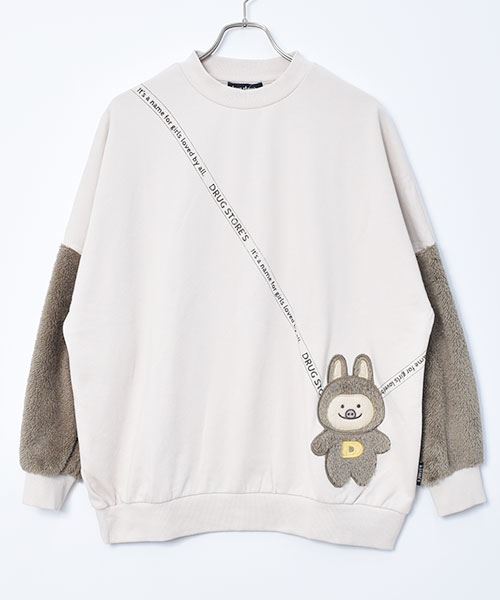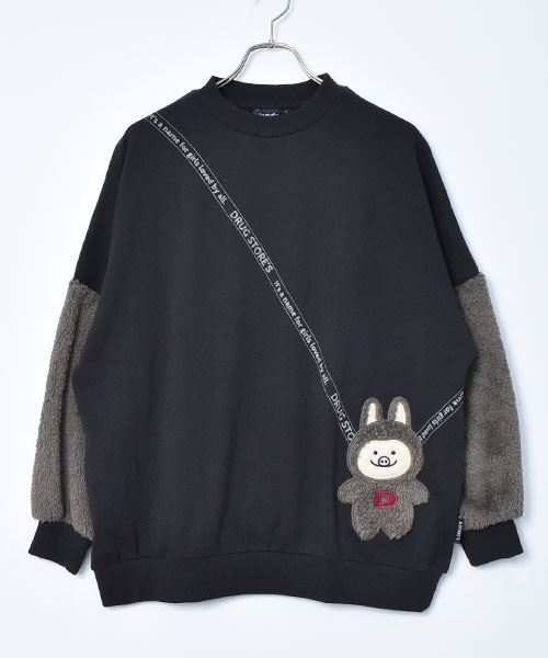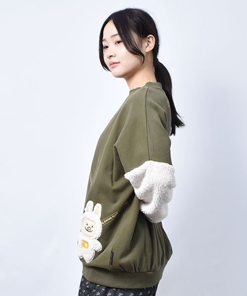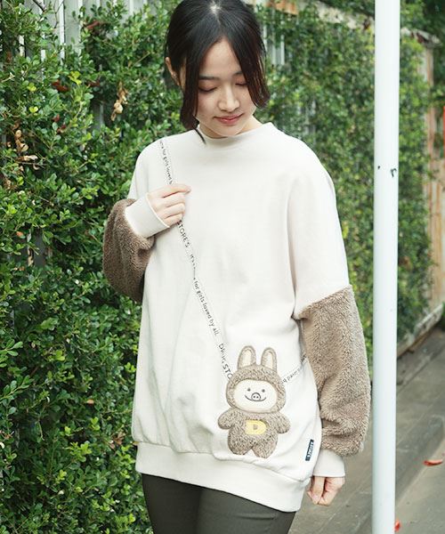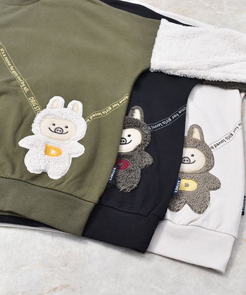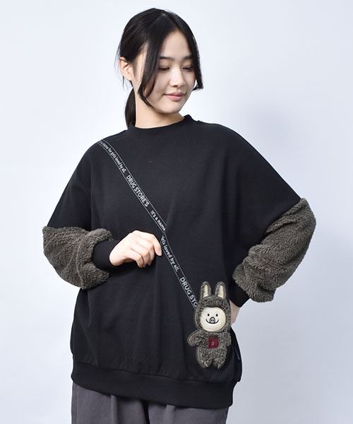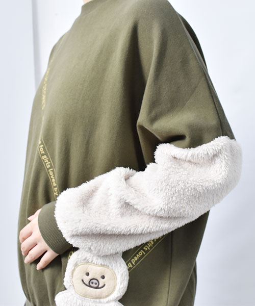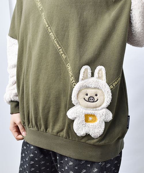ぬいぐるみポシェット風 袖もこ トレーナー