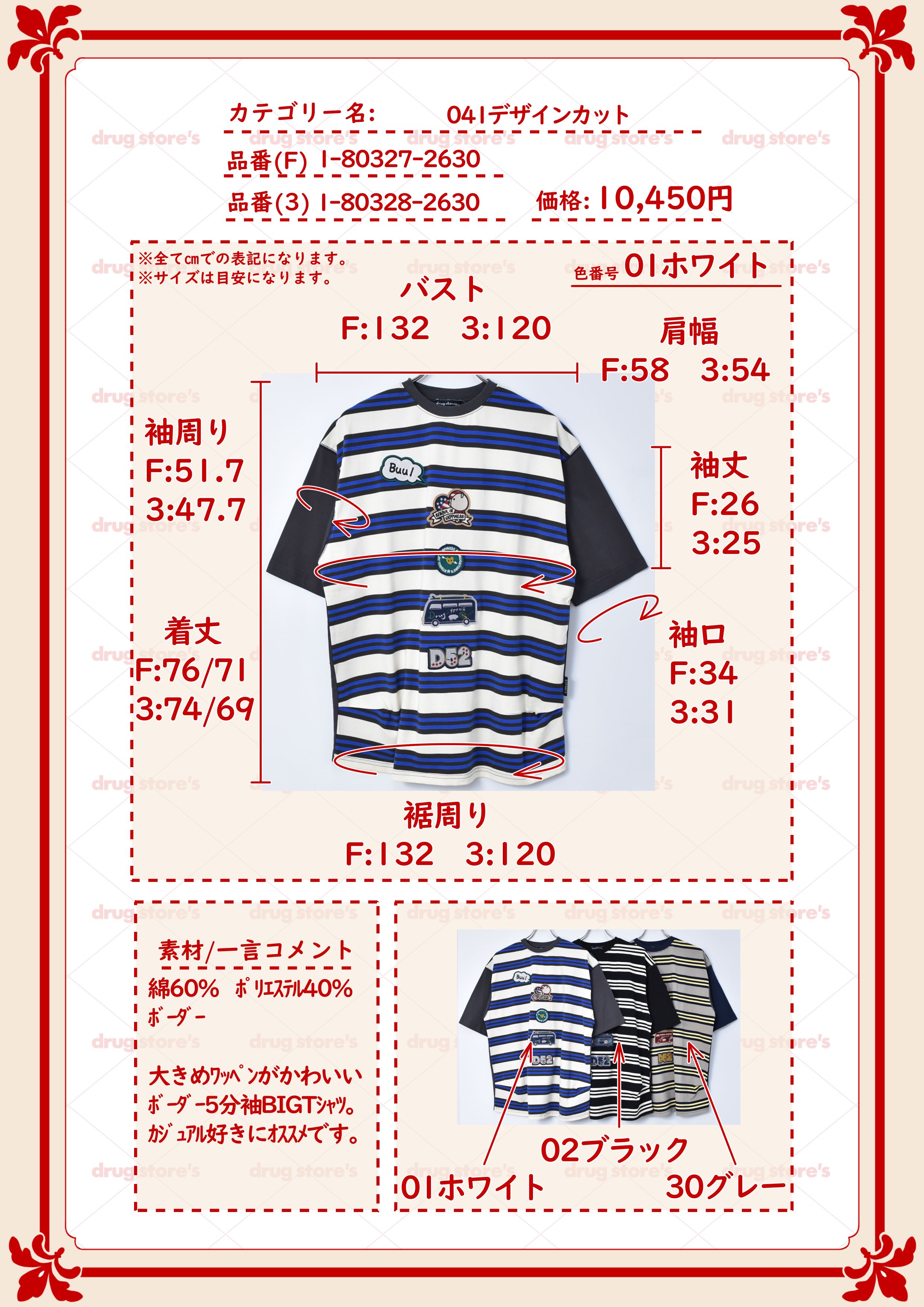 【Tシャツ】 ワッペン ボーダー BIG Tシャツ