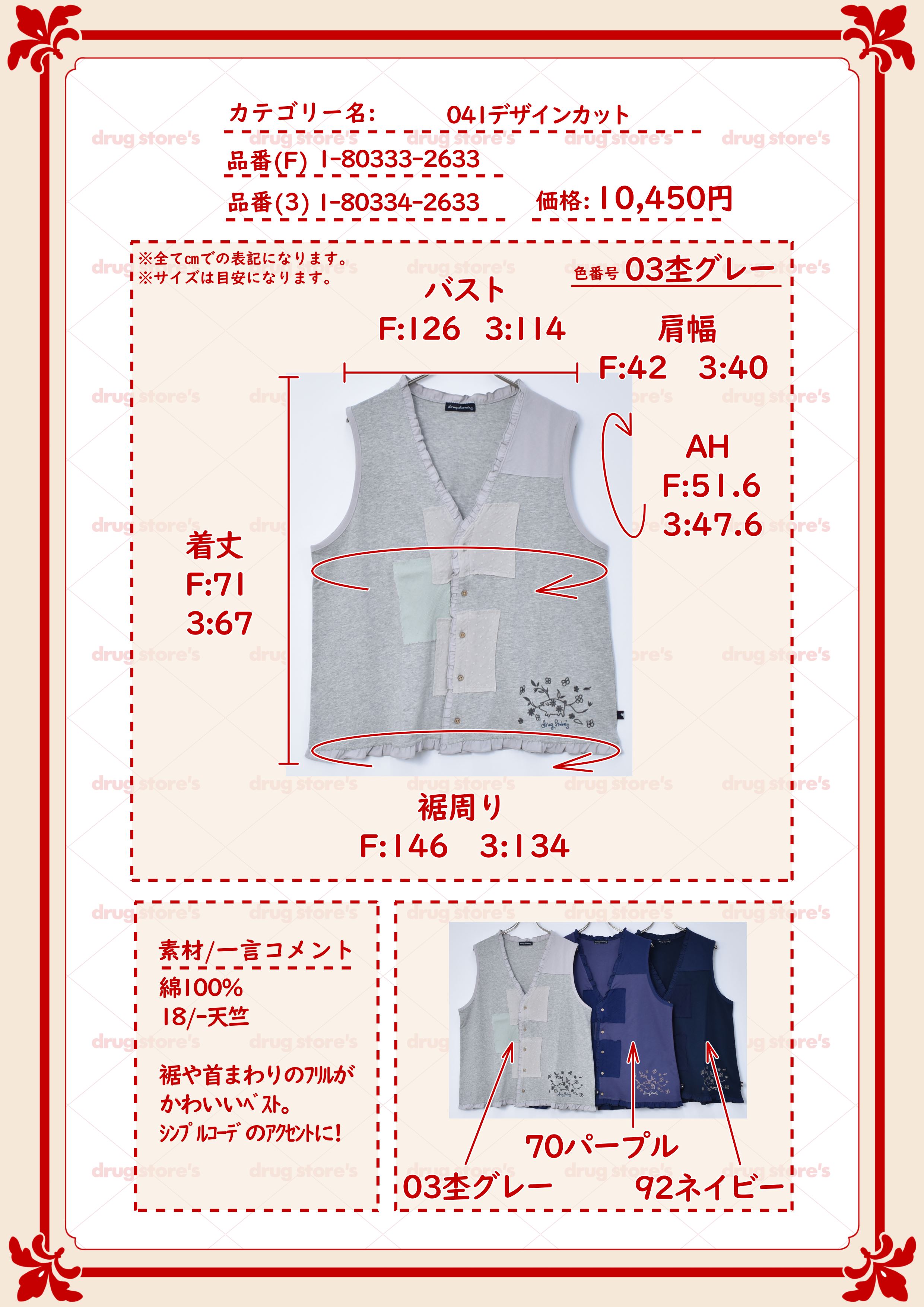 【ベスト】 スカラップ刺繍 フリル ベスト