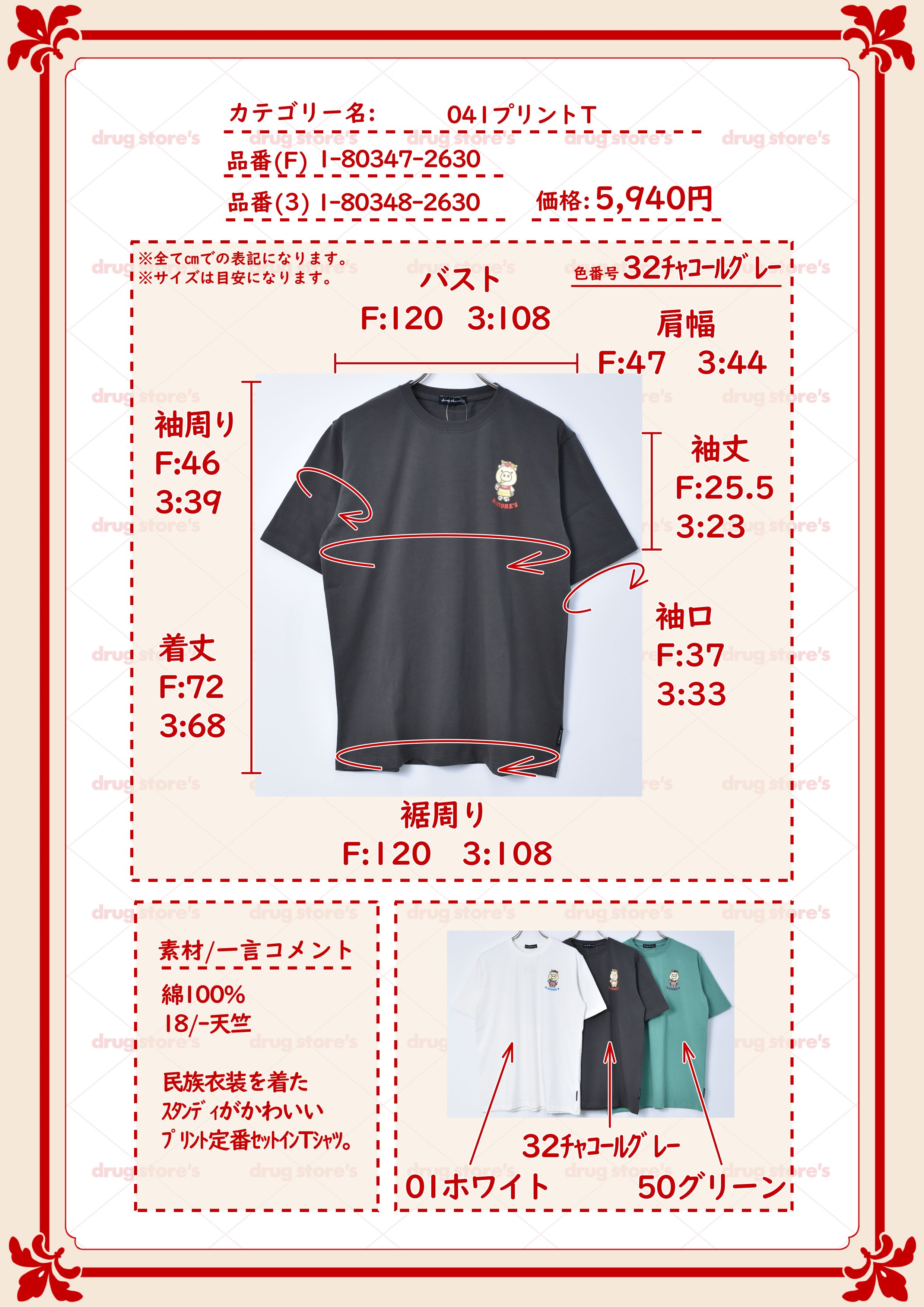 【Tシャツ】 民族スタンディ プリント Tシャツ