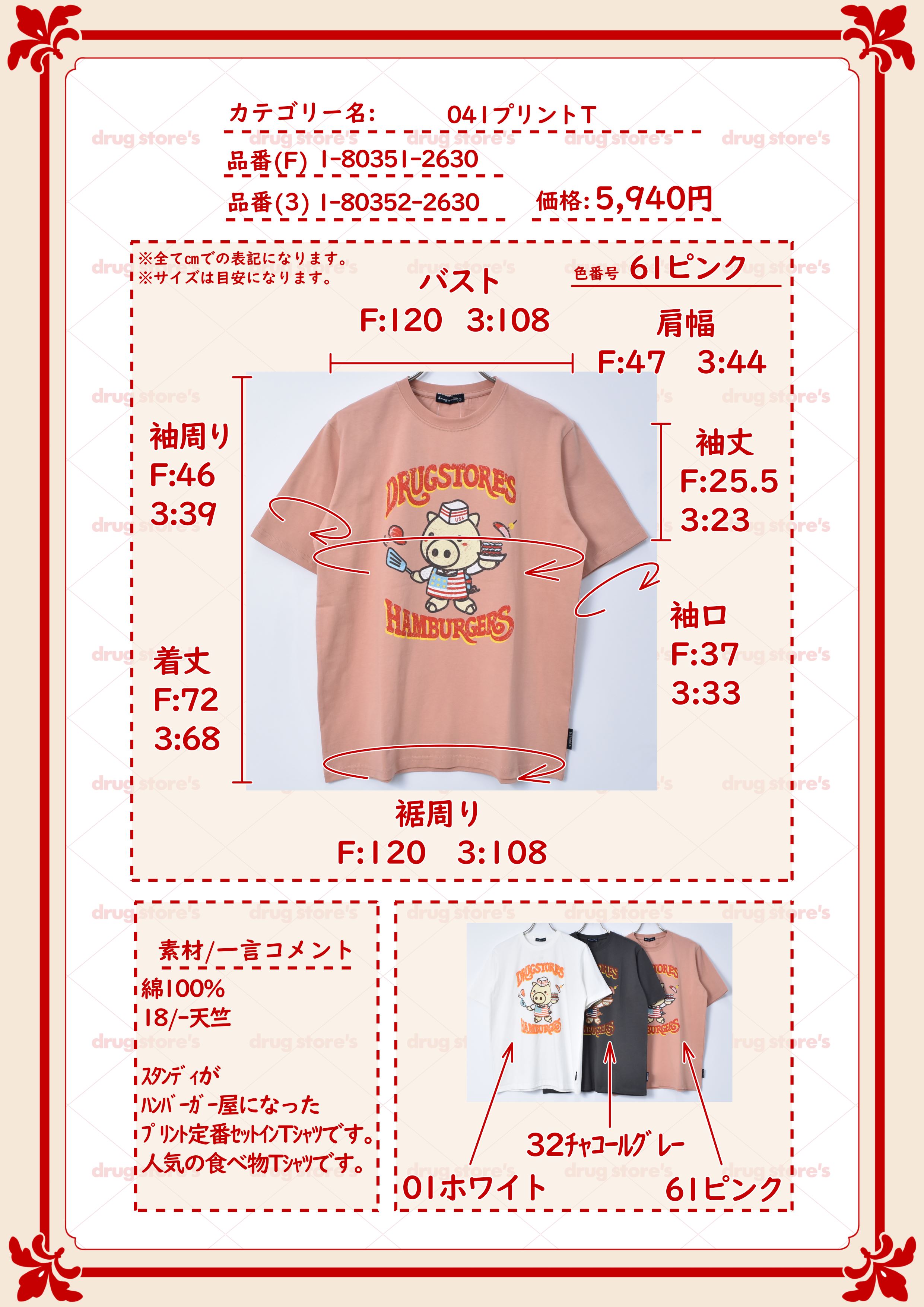 【Tシャツ】 ハンバーガーズ プリント Tシャツ