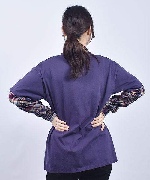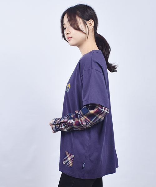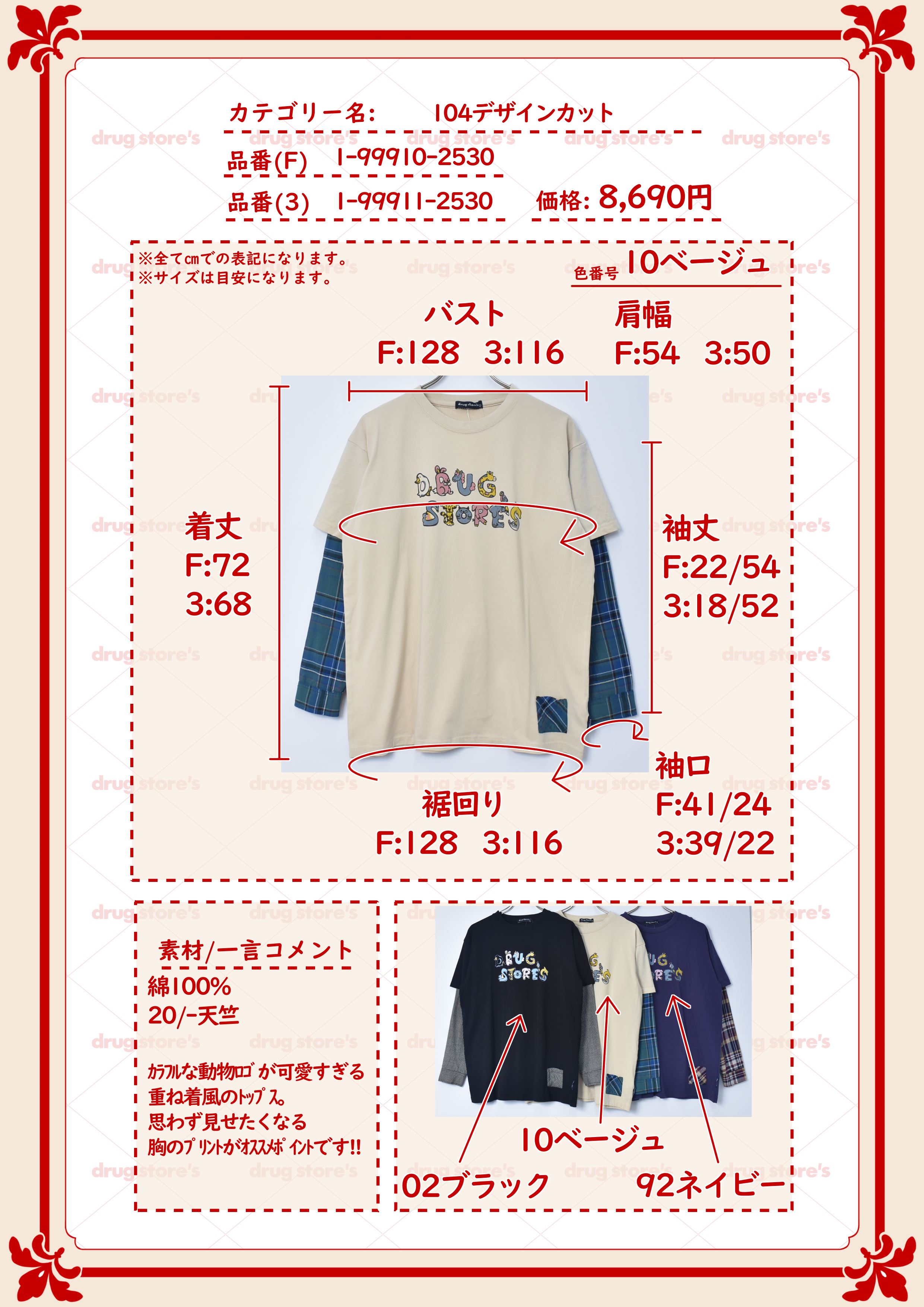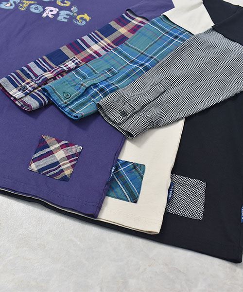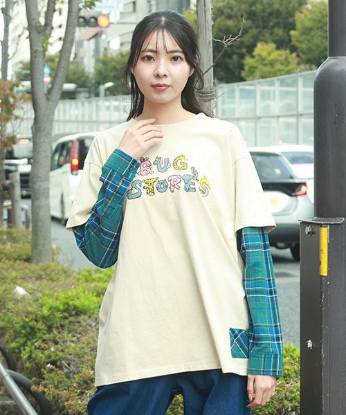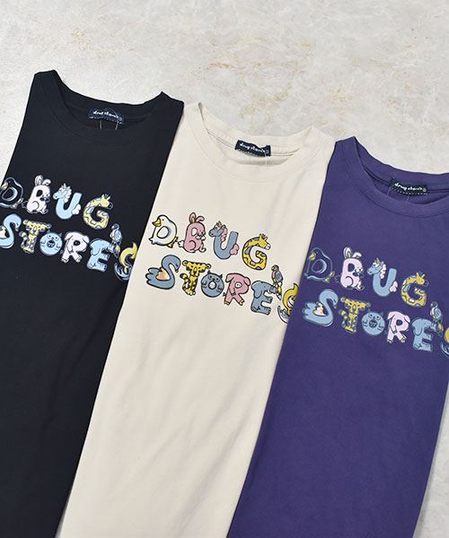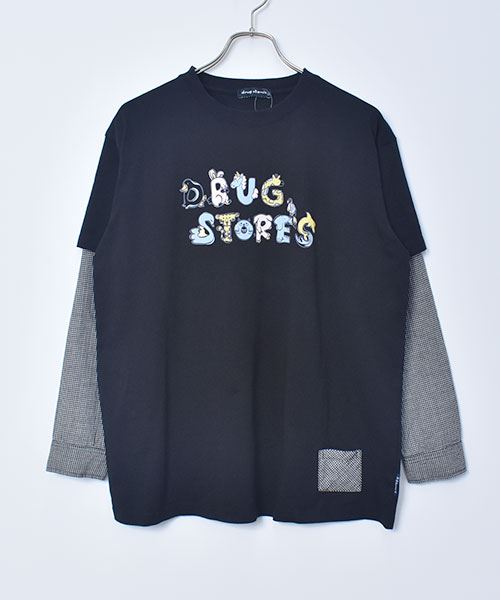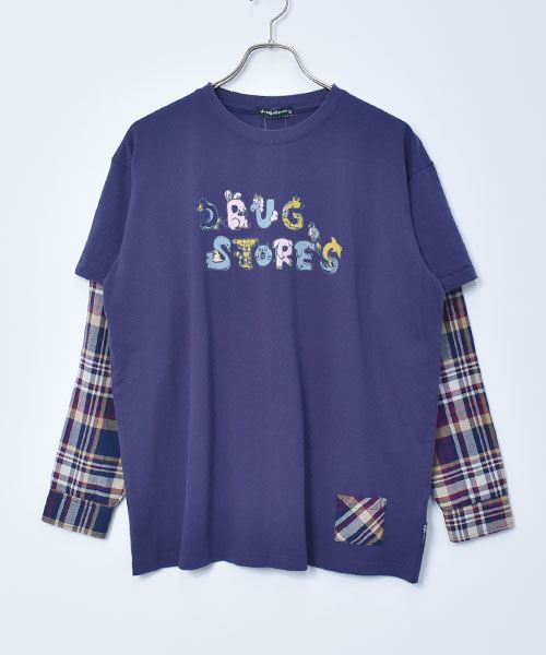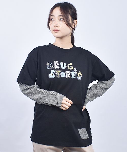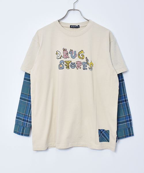 drug store's 20/-天竺 ロゴプリント 重ね着風 Tシャツ
