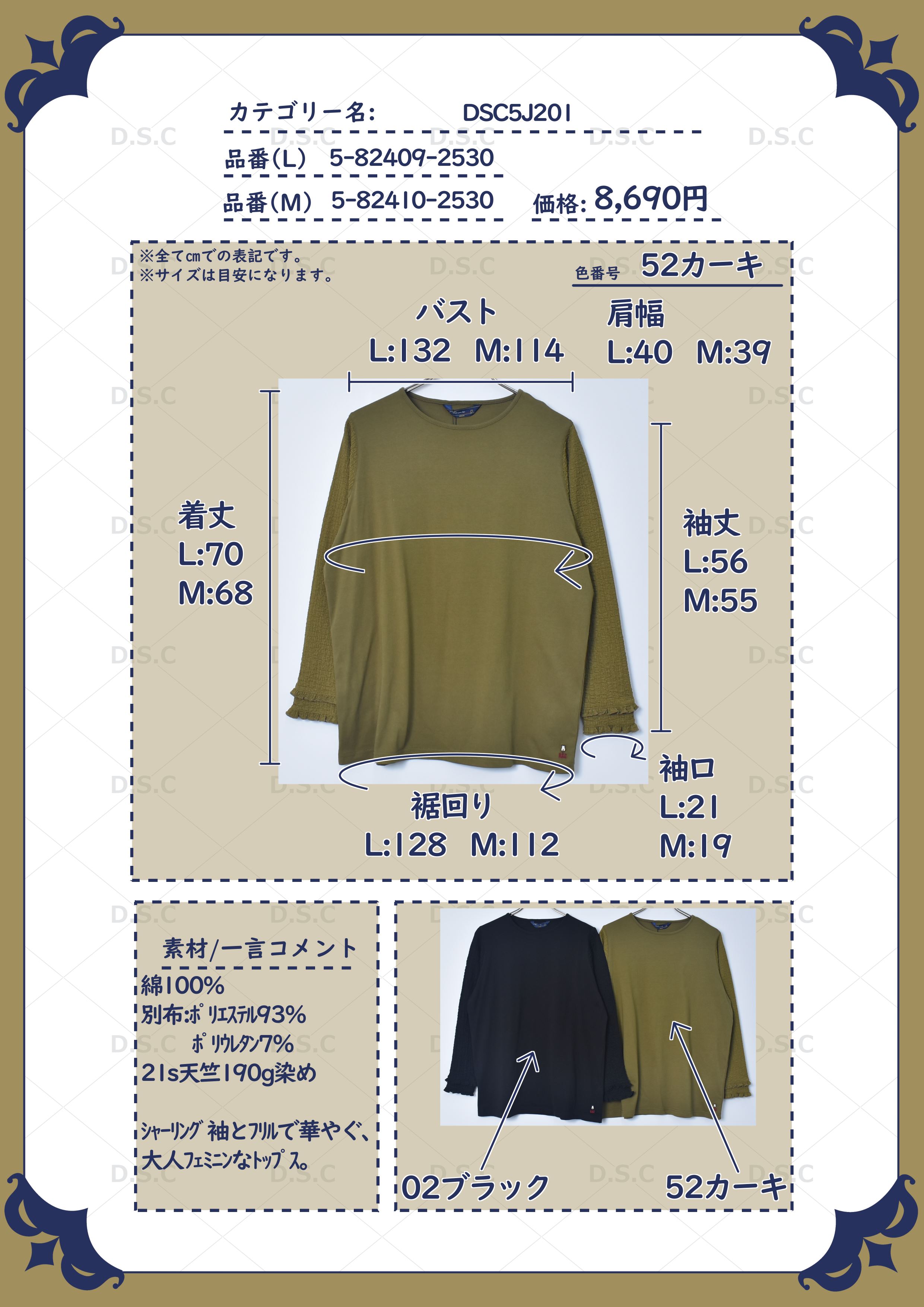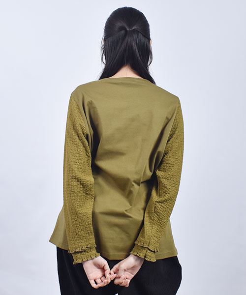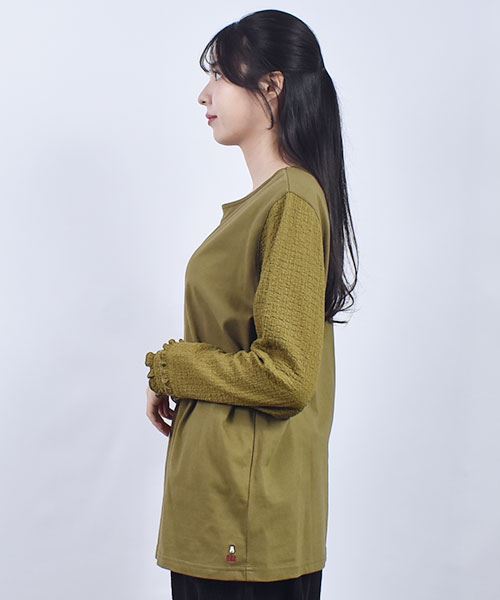 D.S.CLUB 天竺 袖シャーリング 袖口フリル ロンT