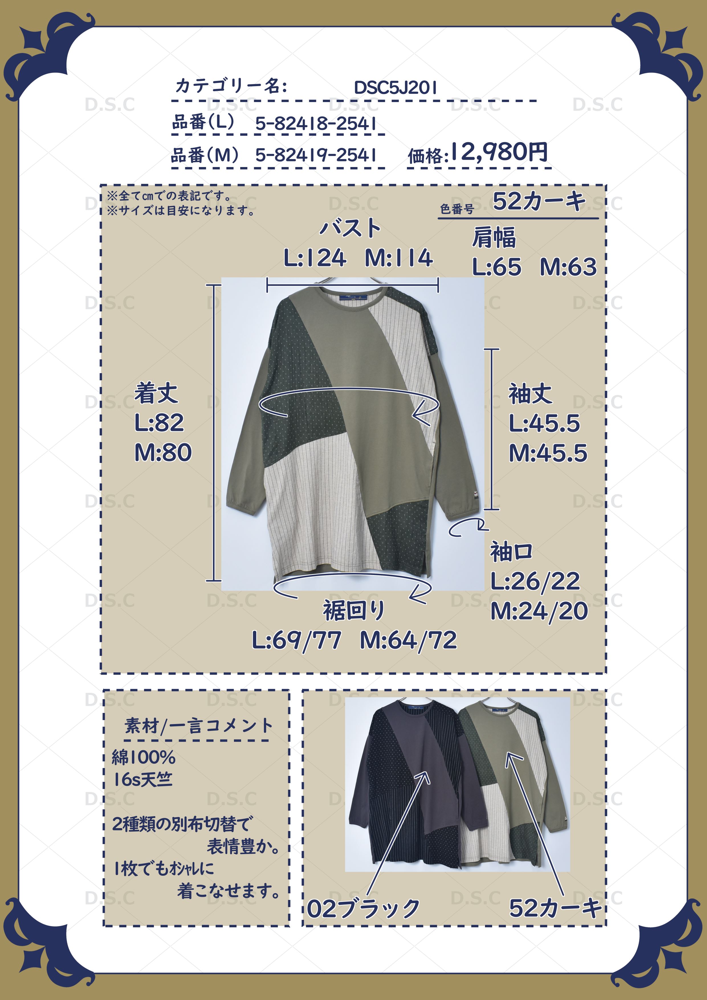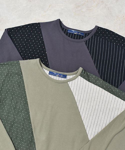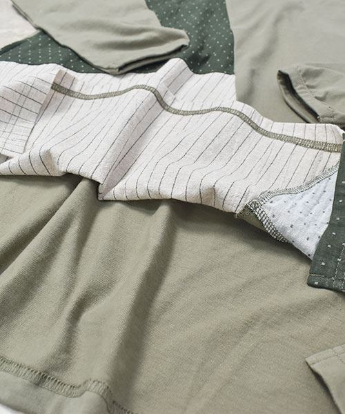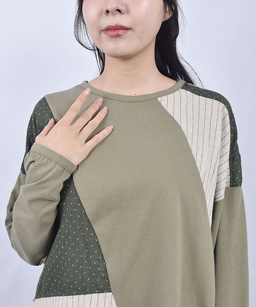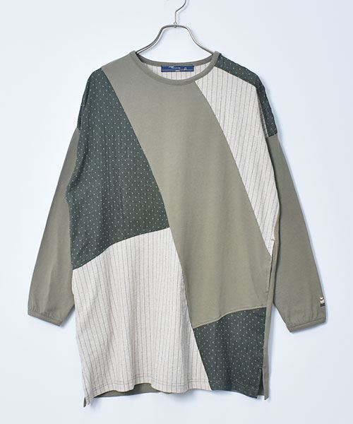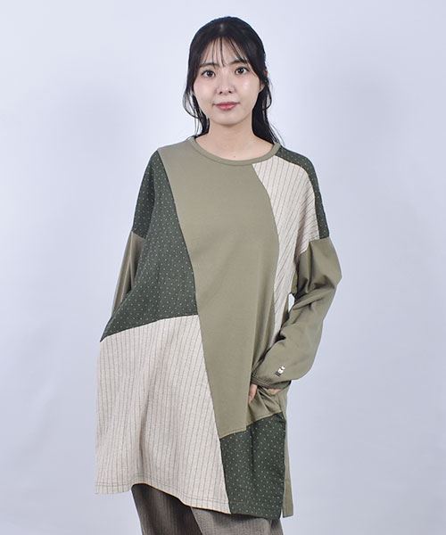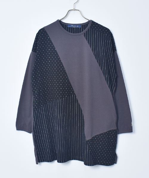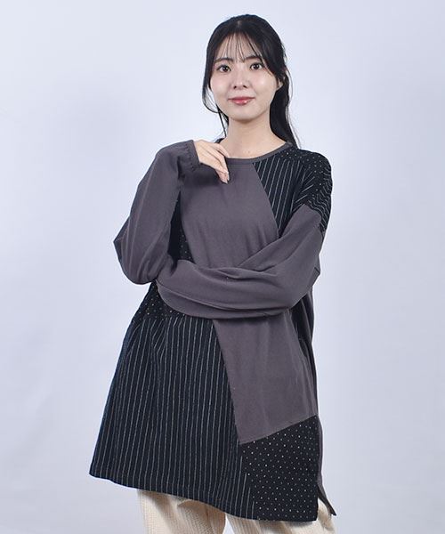 D.S.CLUB 天竺 水玉×ストライプ ハギハギ 切替 チュニック