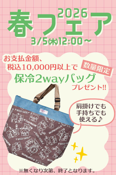 期間中お支払商品金額税込10,000円以上で保冷2wayバッグをプレゼント!!
