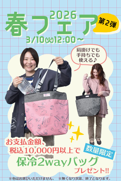 期間中お支払商品金額税込10,000円以上で保冷2wayバッグをプレゼント!!