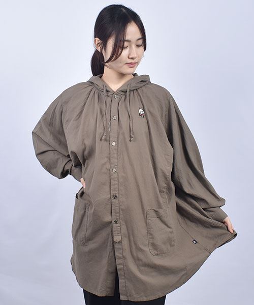 drug store's ブタ刺繍 ドルマン フードシャツ羽織