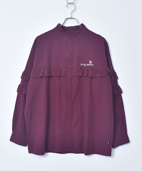 drug store's スタンドカラー フリル ブラウス