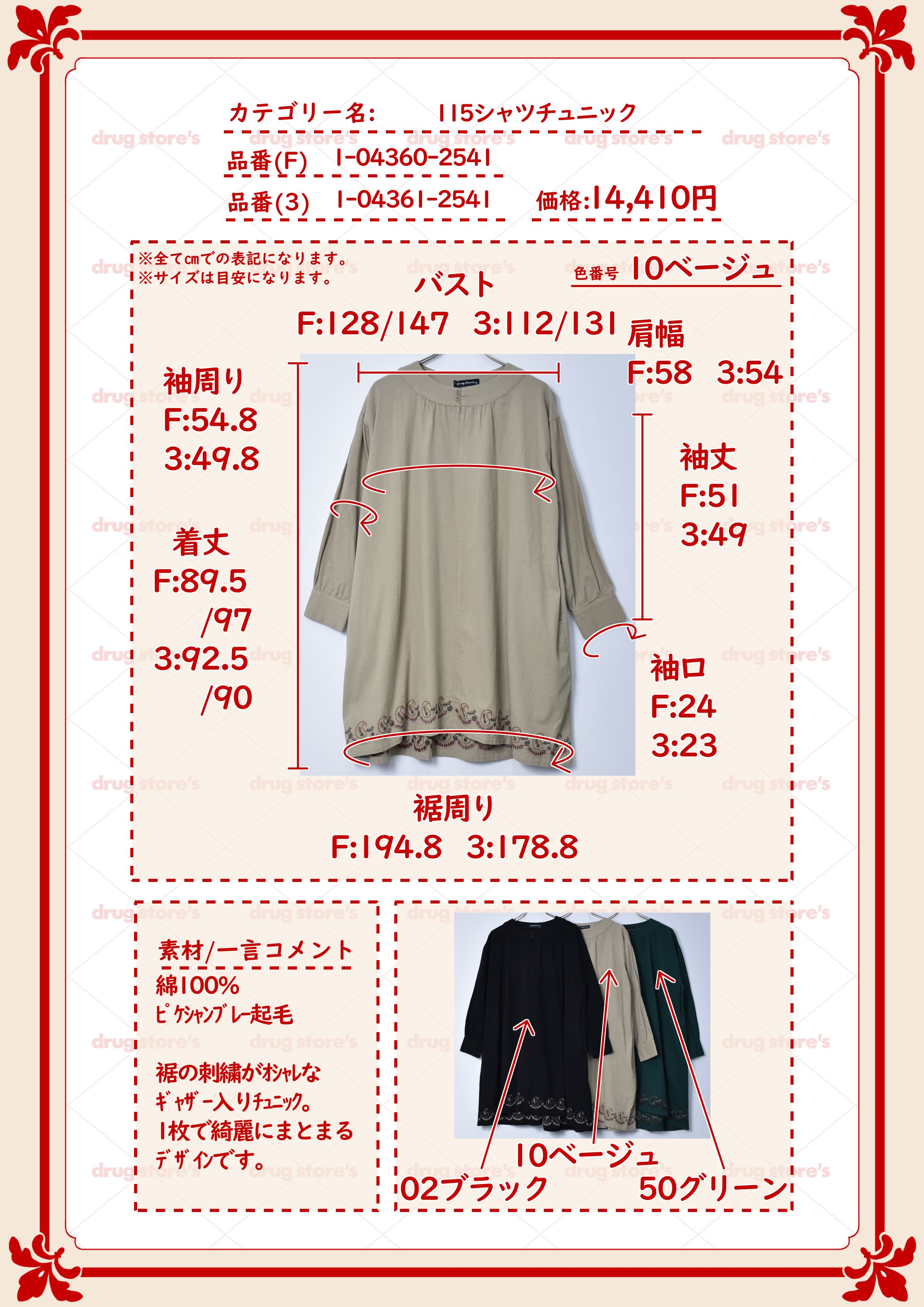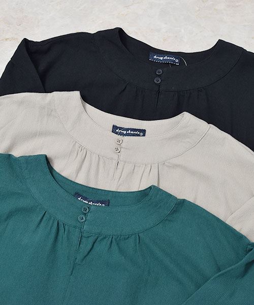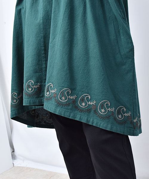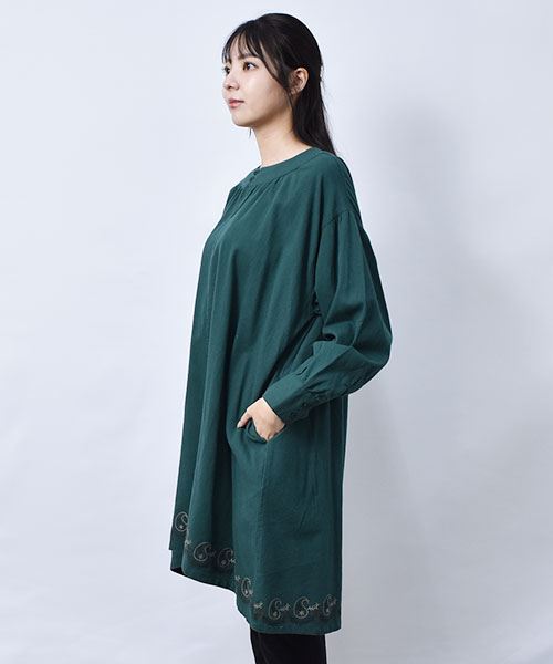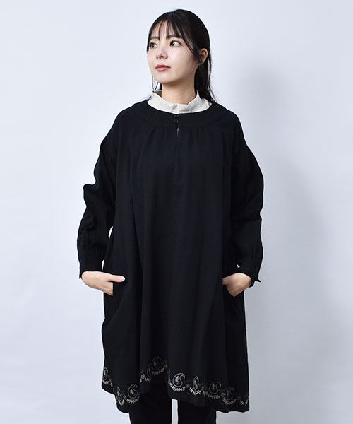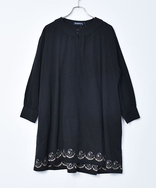drug store's ピケシャンブレー起毛 衿ぐり 裾刺繍 ギャザー チュニック