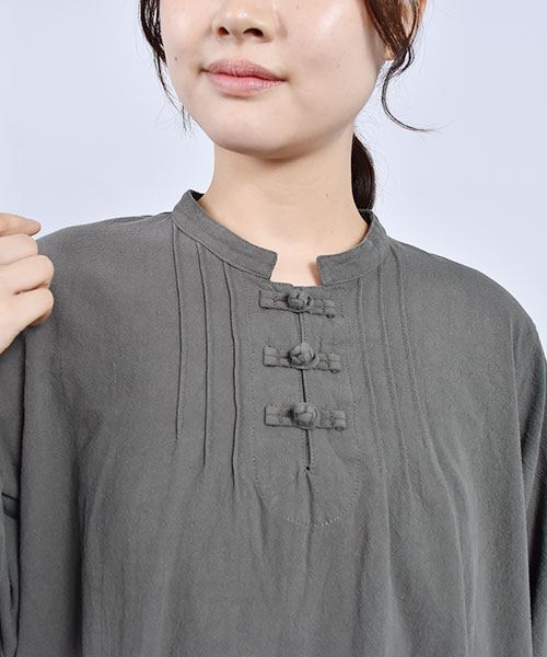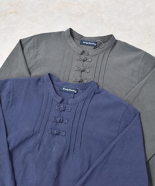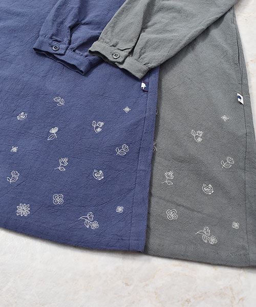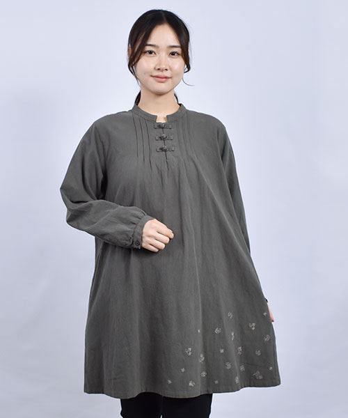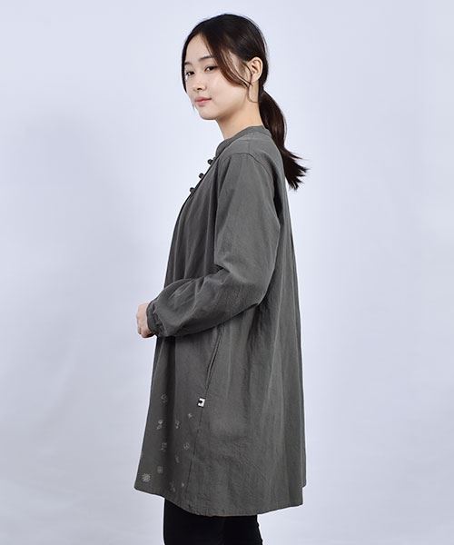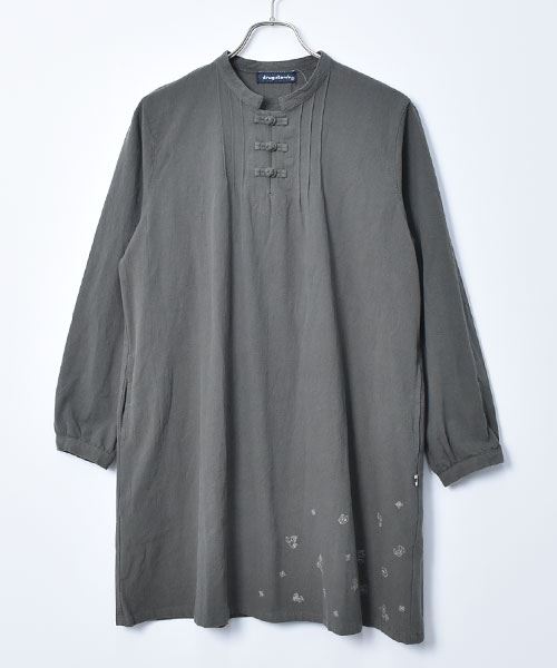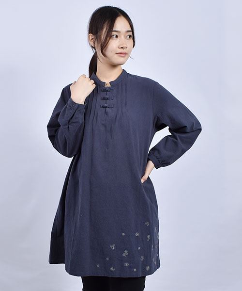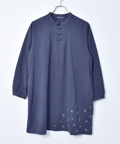 drug store's スタンドカラー 花刺繍 チャイナボタンつき チュニック