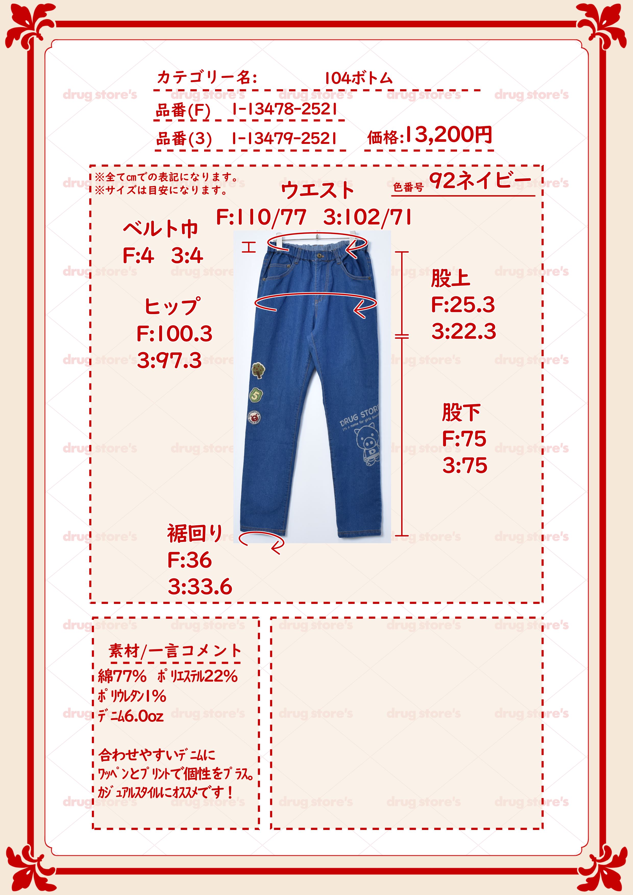 drug store's 6.0ozデニム ワッペン スタンディプリント パンツ