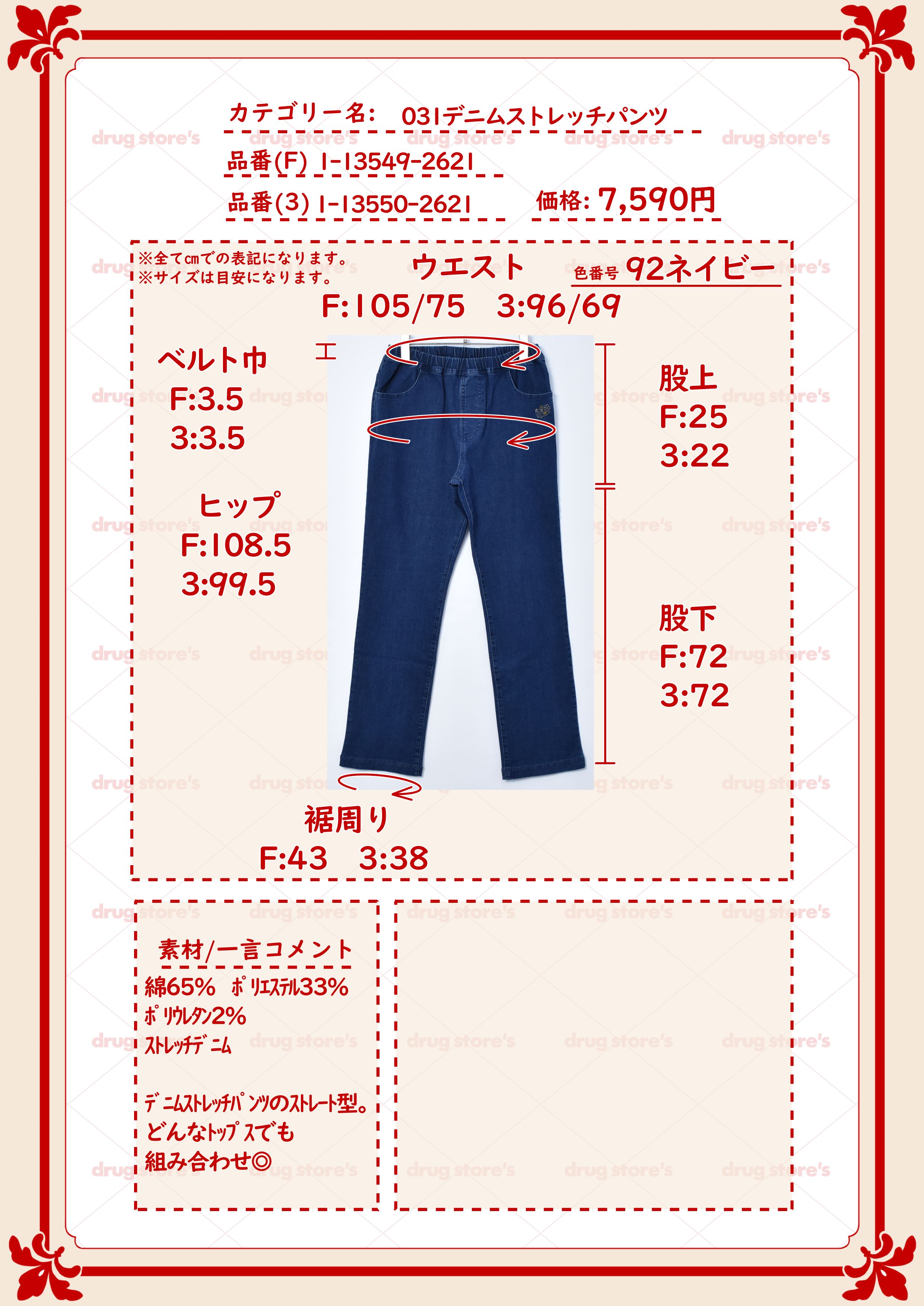 【ストパン】 うず&花 ストレート デニムストレッチパンツ