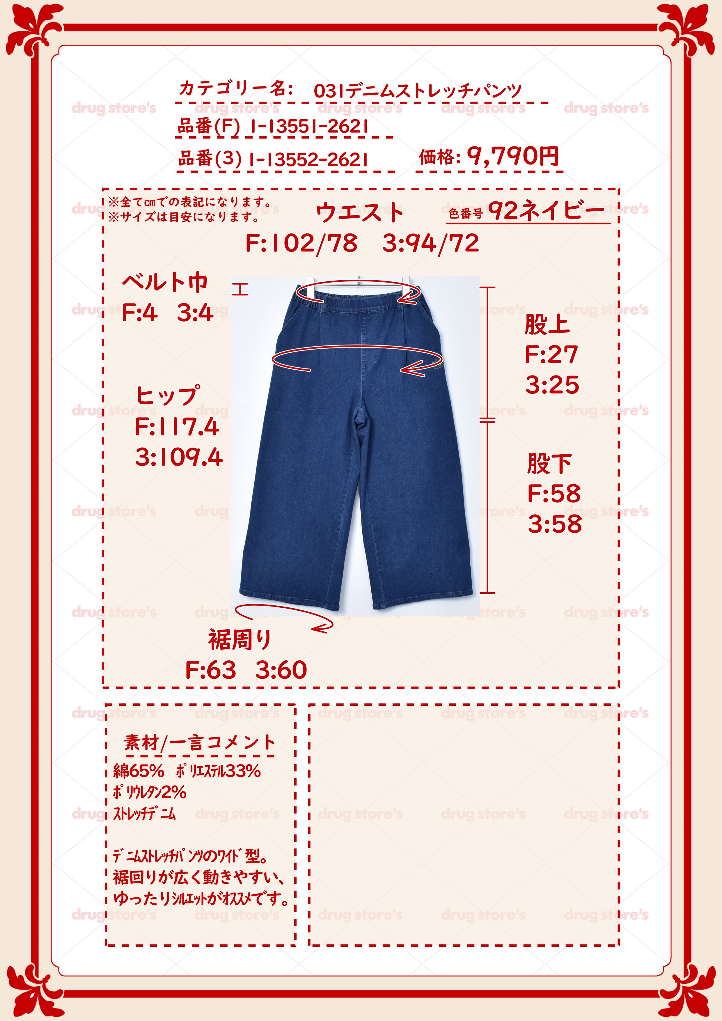【ストパン】 うず&花 ワイド デニムストレッチパンツ