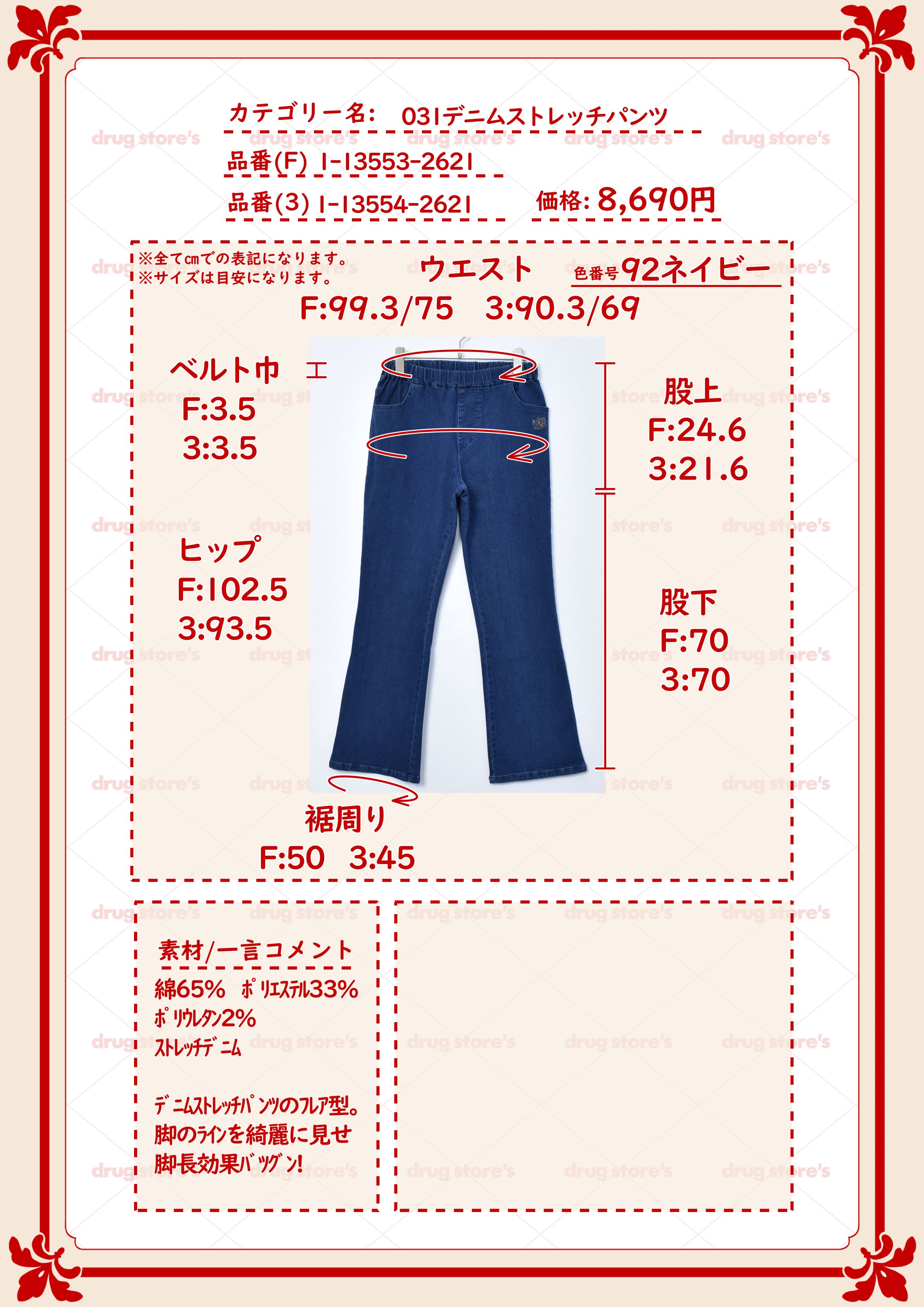 【ストパン】 うず&花 フレア デニムストレッチパンツ