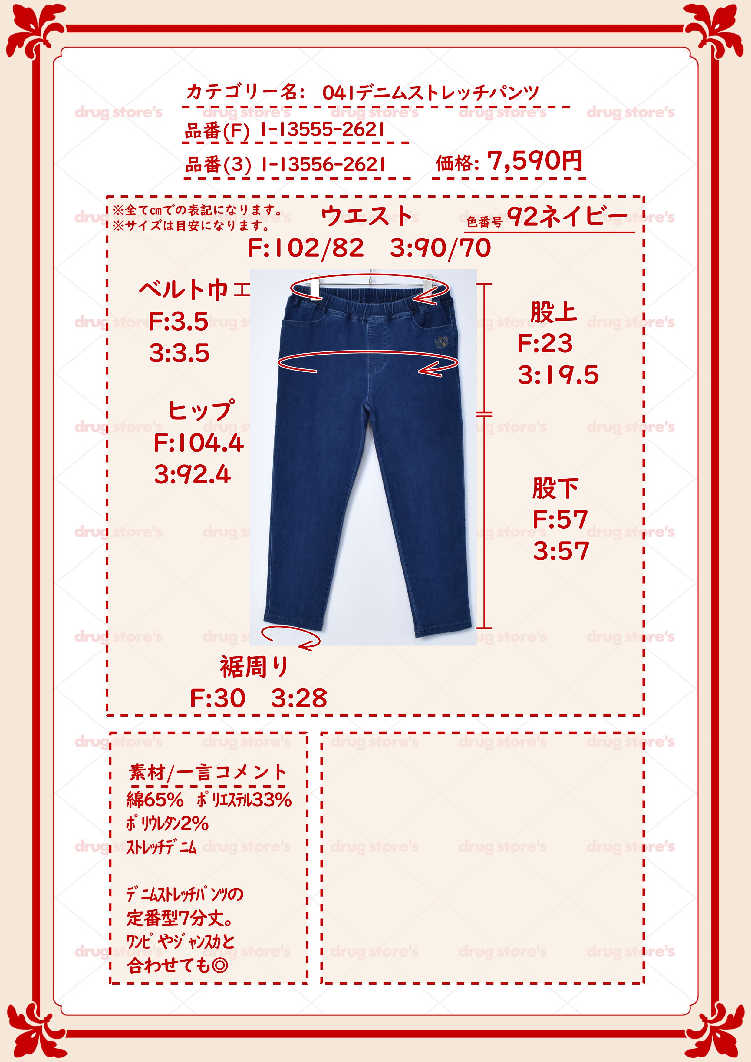 【ストパン】 うず&花 定番7分丈 デニムストレッチパンツ