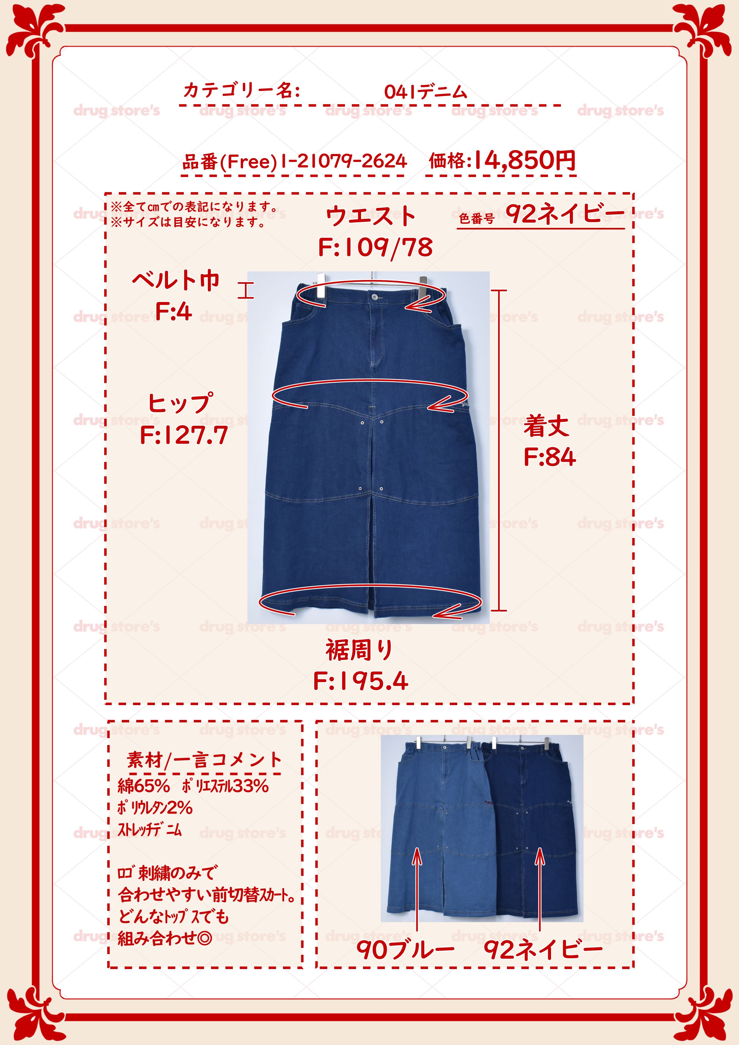 【スカート】 ロゴ刺繍 ストレッチデニム スカート