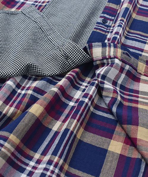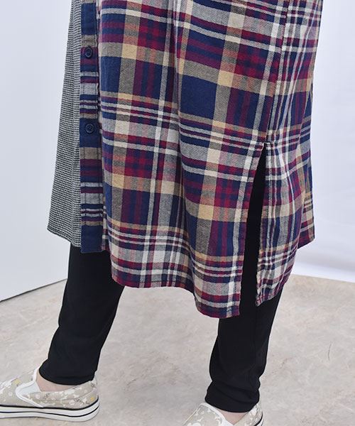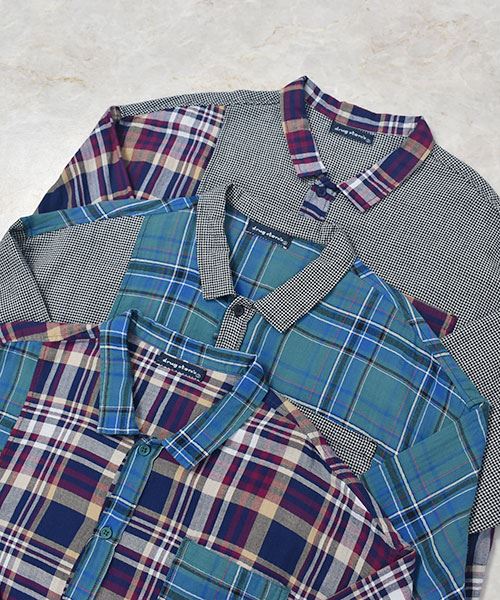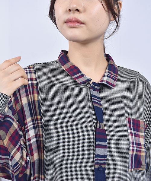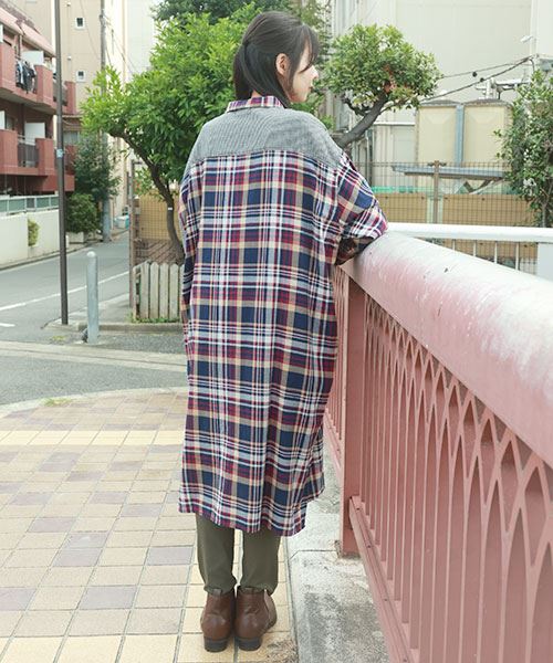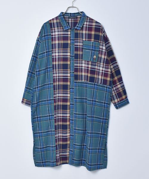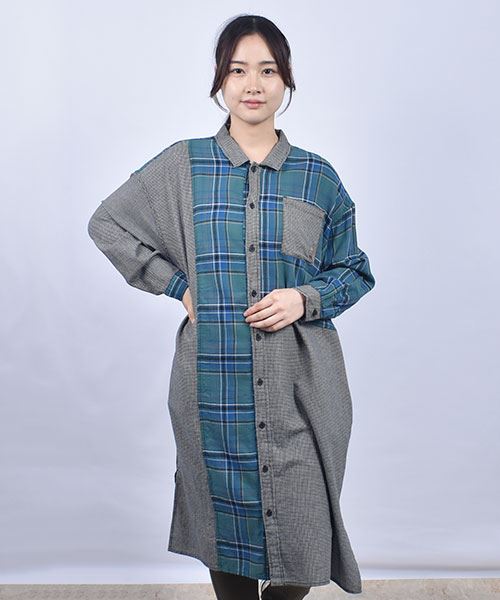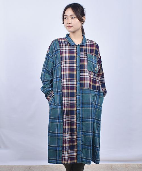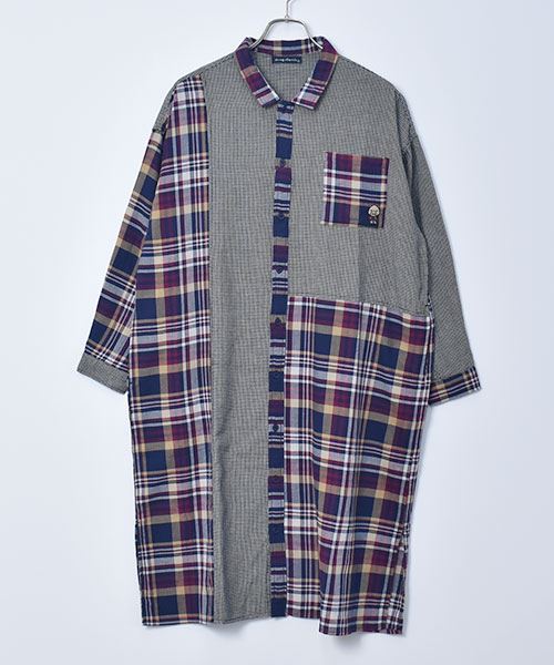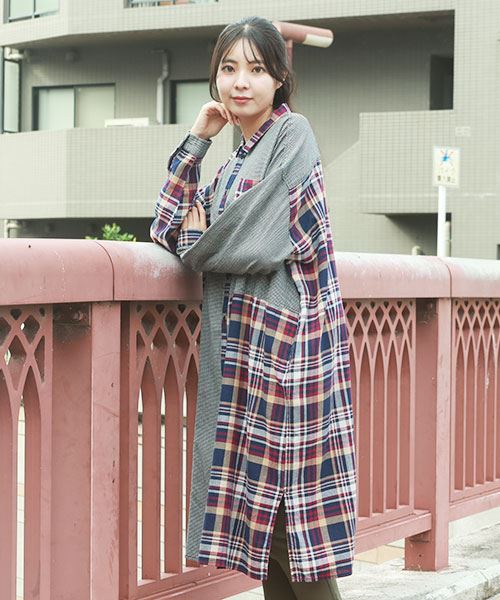 drug store's チェック ハギハギ 長袖 BIG ワンピース