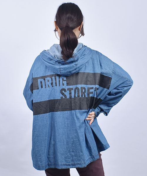 drug store's ブタ刺繍 バックロゴプリント デニム BIG ブルゾン