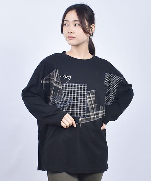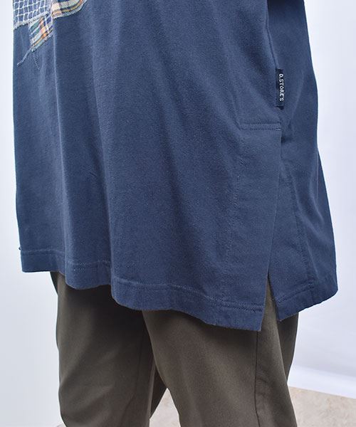 drug store's 18/-天竺 刺繍&アップリケ ロングスリット 丈長 T