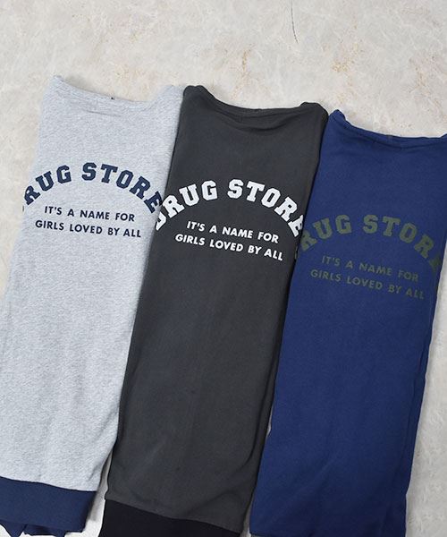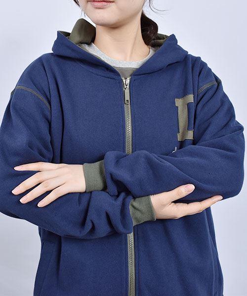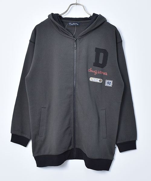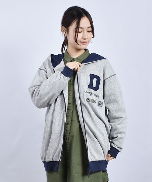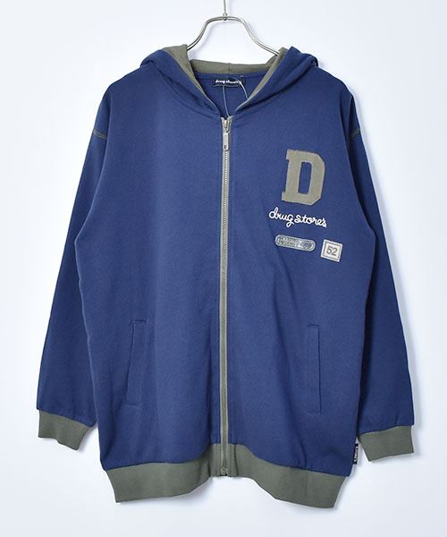 drug store's 裏毛 アップリケ&フェルトワッペン 配色 リブ パーカー