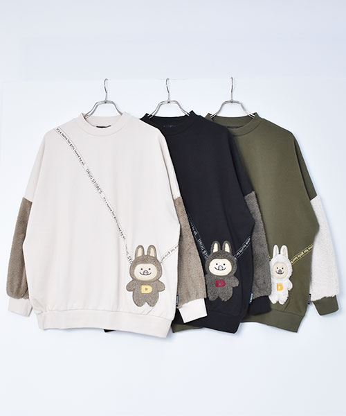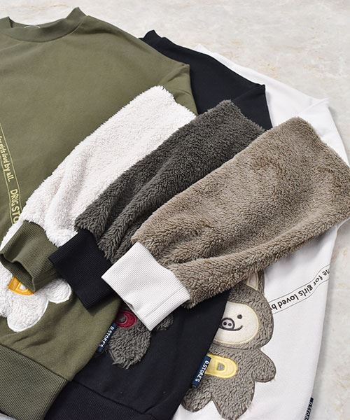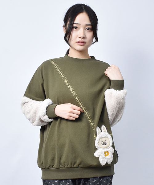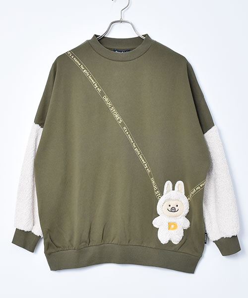 ぬいぐるみポシェット風 袖もこ トレーナー