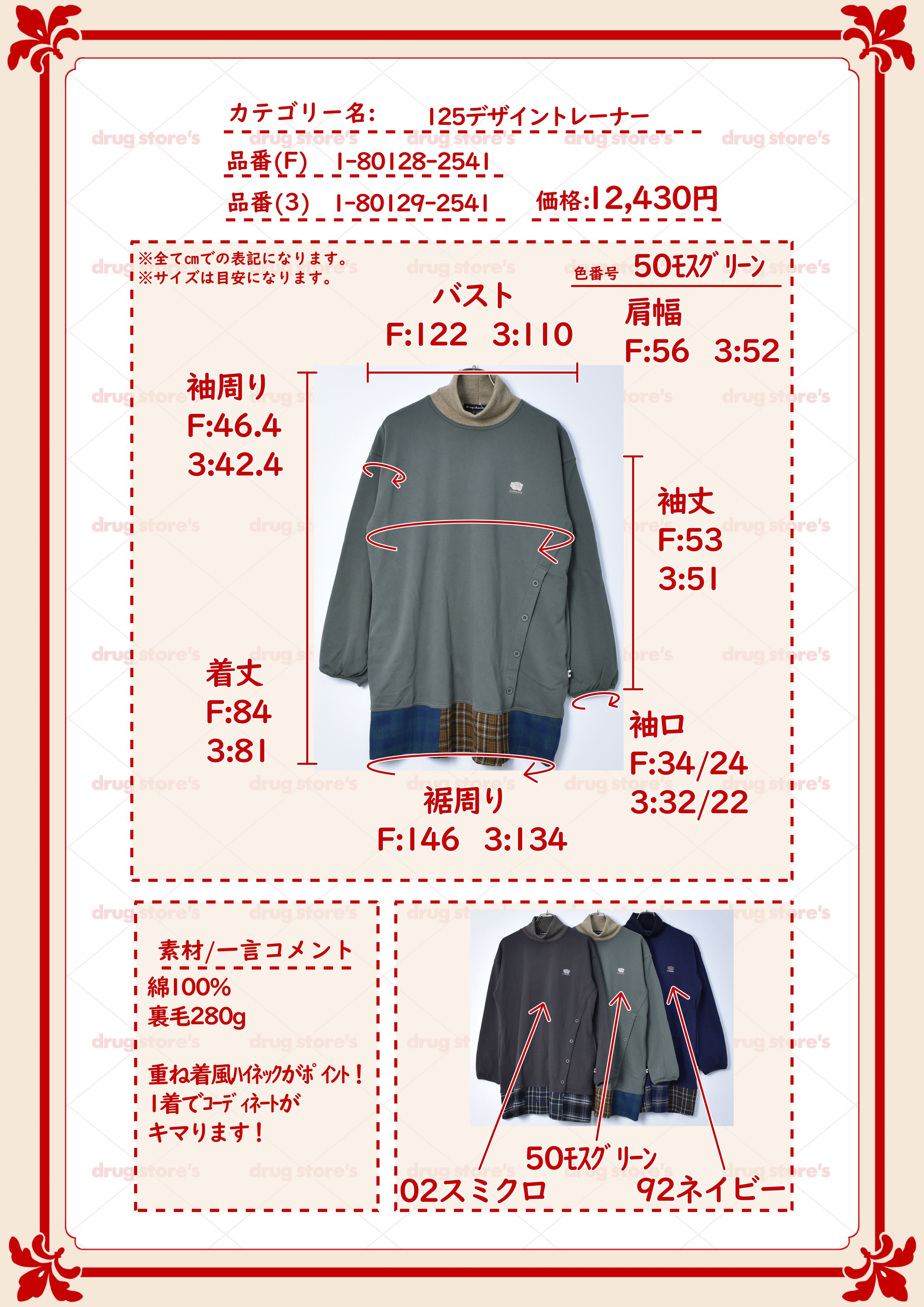 選択されたカラー:50 モスグリーン