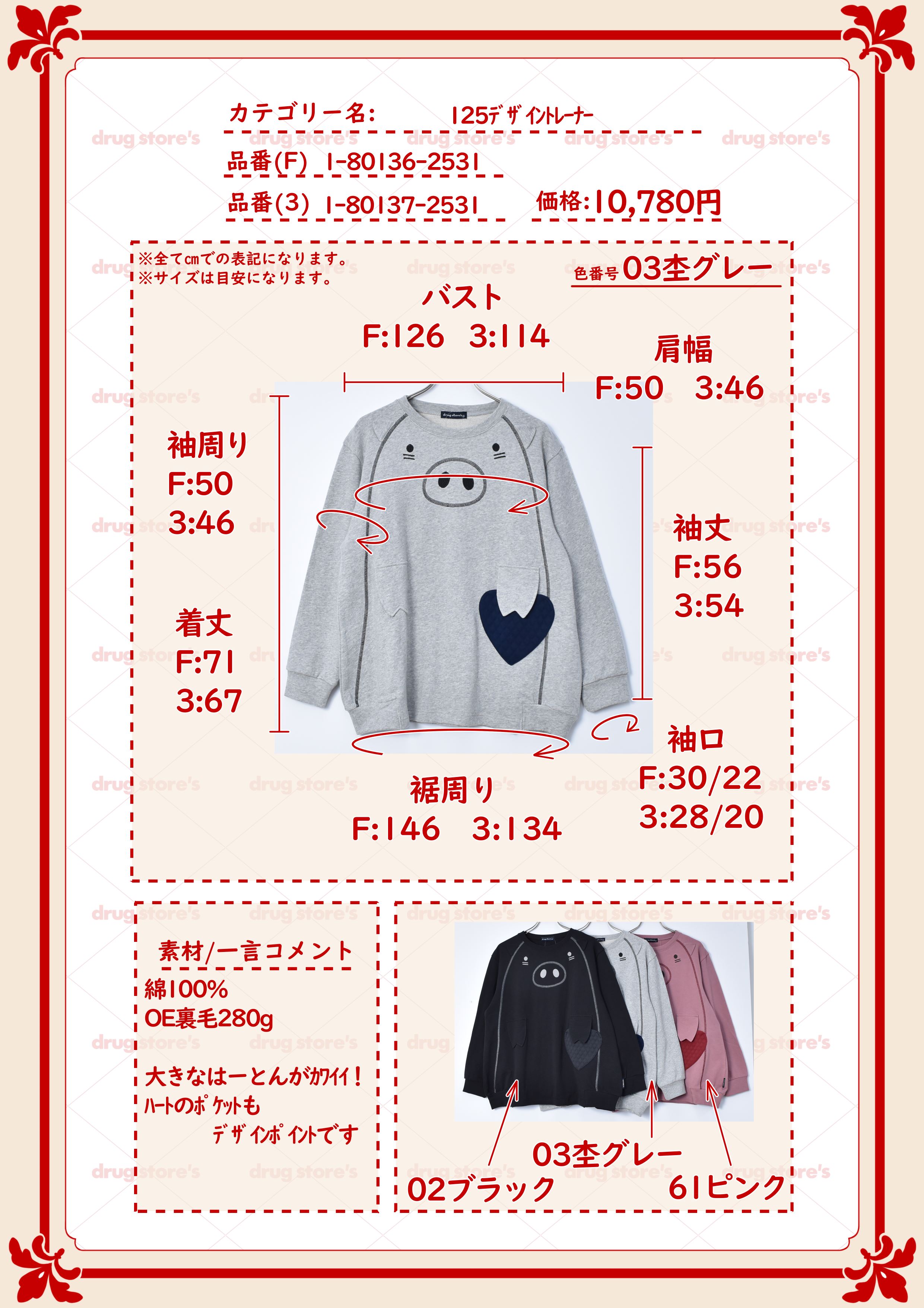 【スウェット トレーナー / 裏毛】 BIG ハートン トレーナー