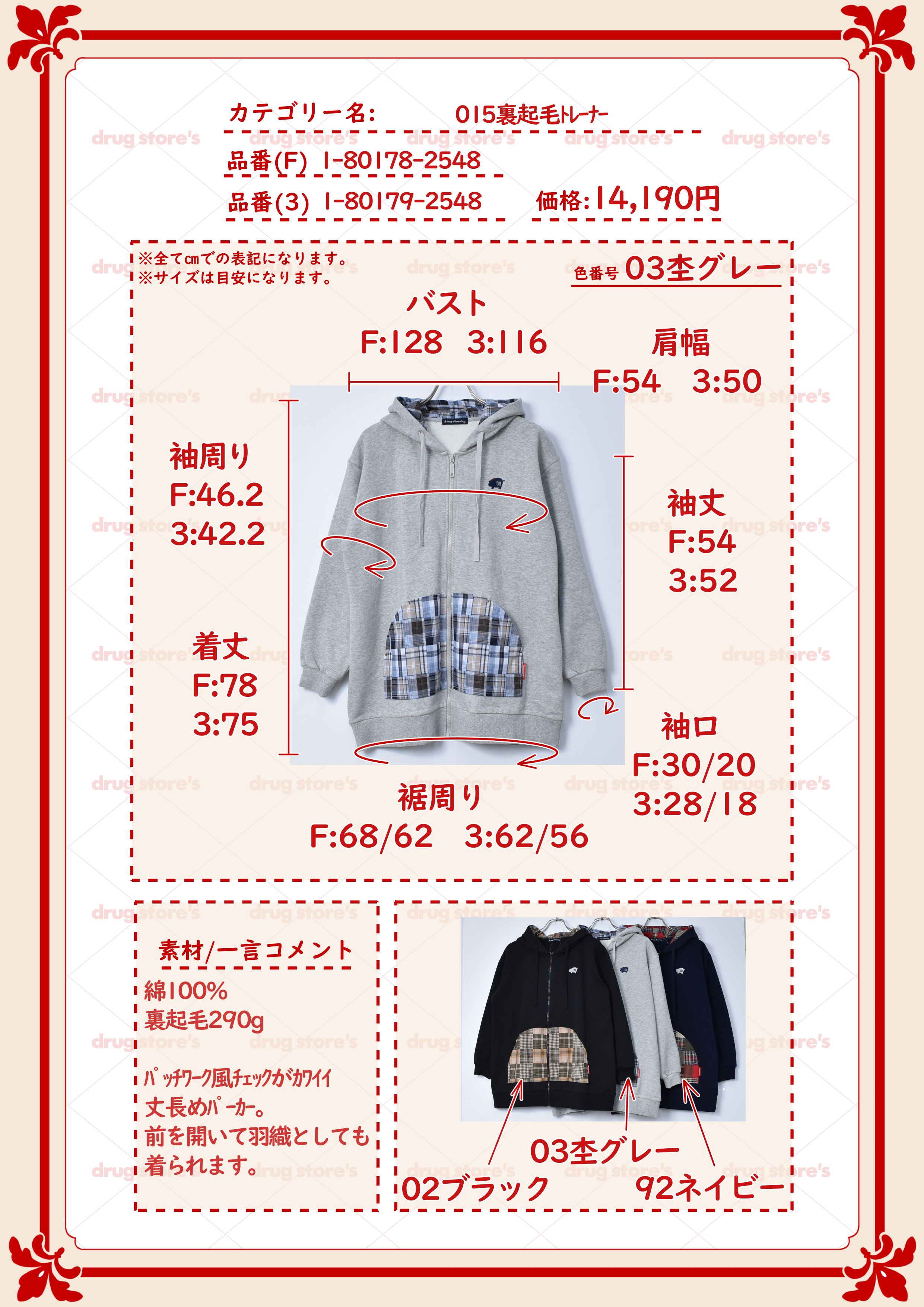 【パーカー / 裏起毛】 パッチワーク風 パーカー