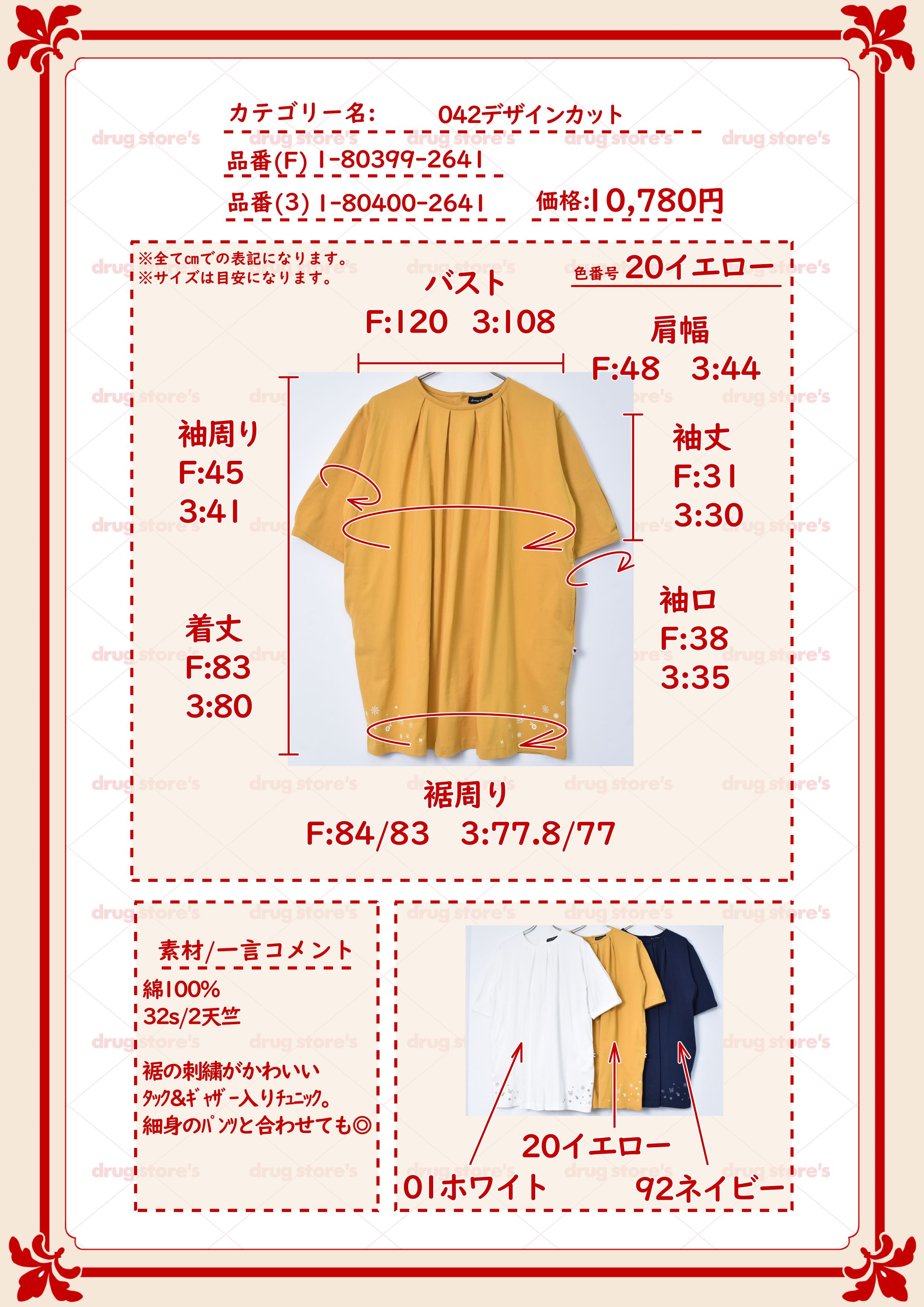 【チュニック】 タック&ギャザー 刺繍 チュニック