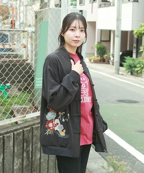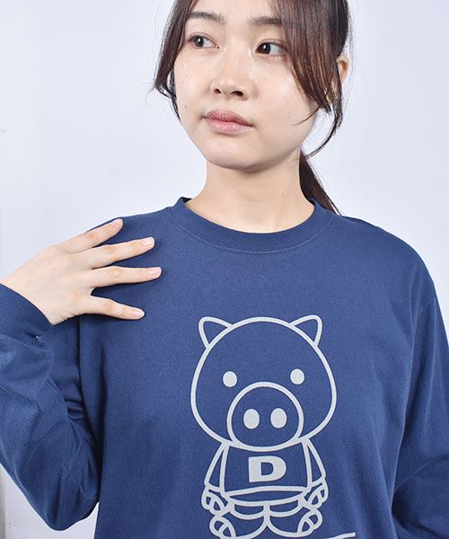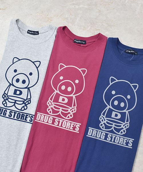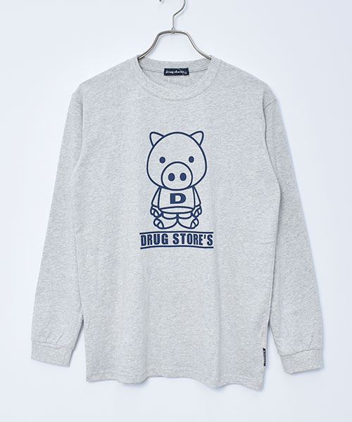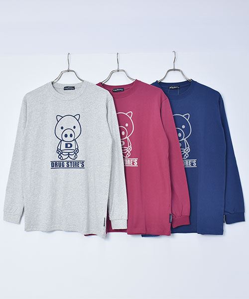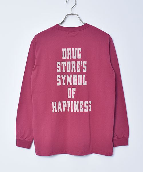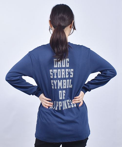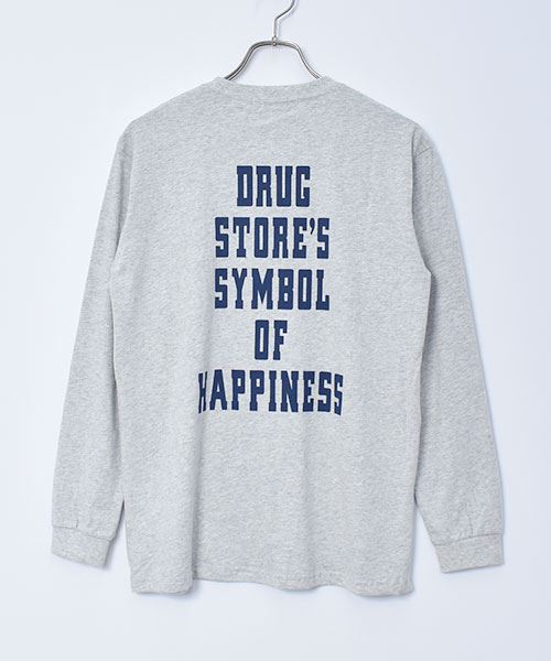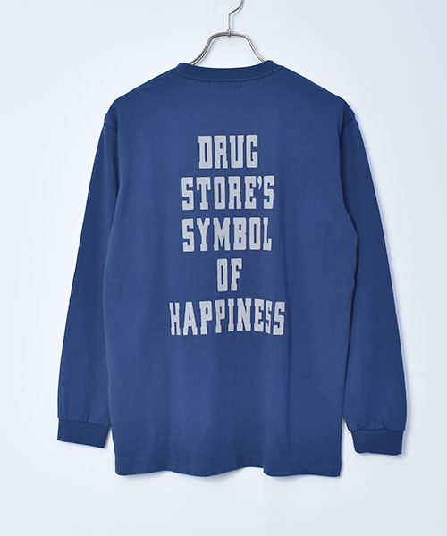 drug store's 20/-天竺 リブ衿袖 スタンディフロント&バックプリント セットイン ロンT