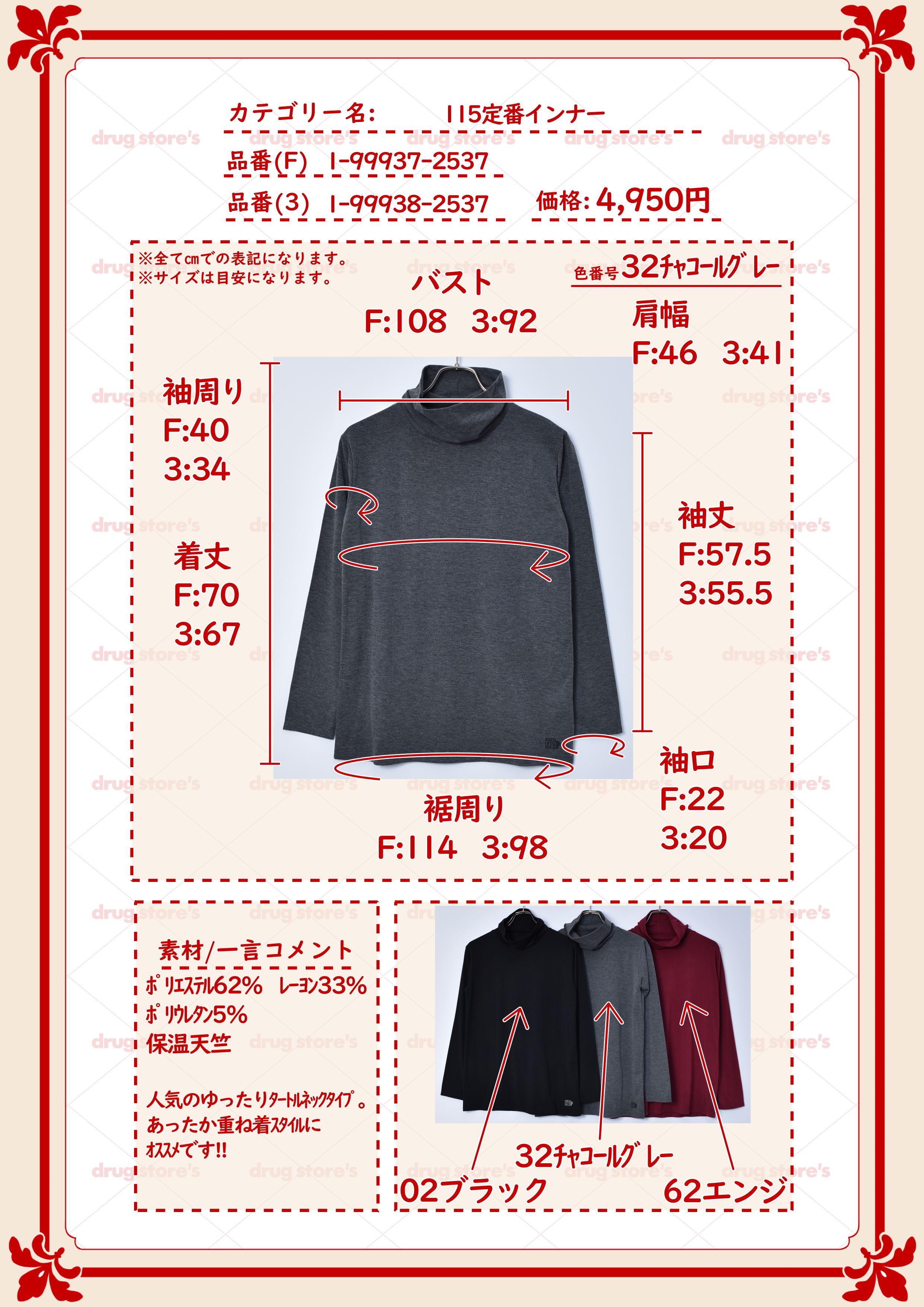 drug store's 天竺 タートルネック インナーT
