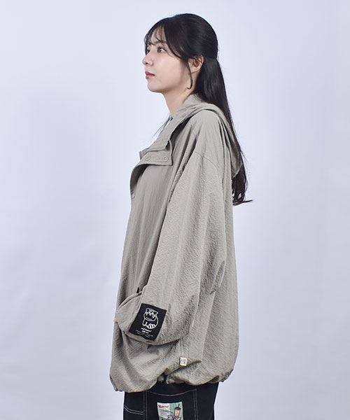 mof manul 絞りつき 袖太 パーカー羽織