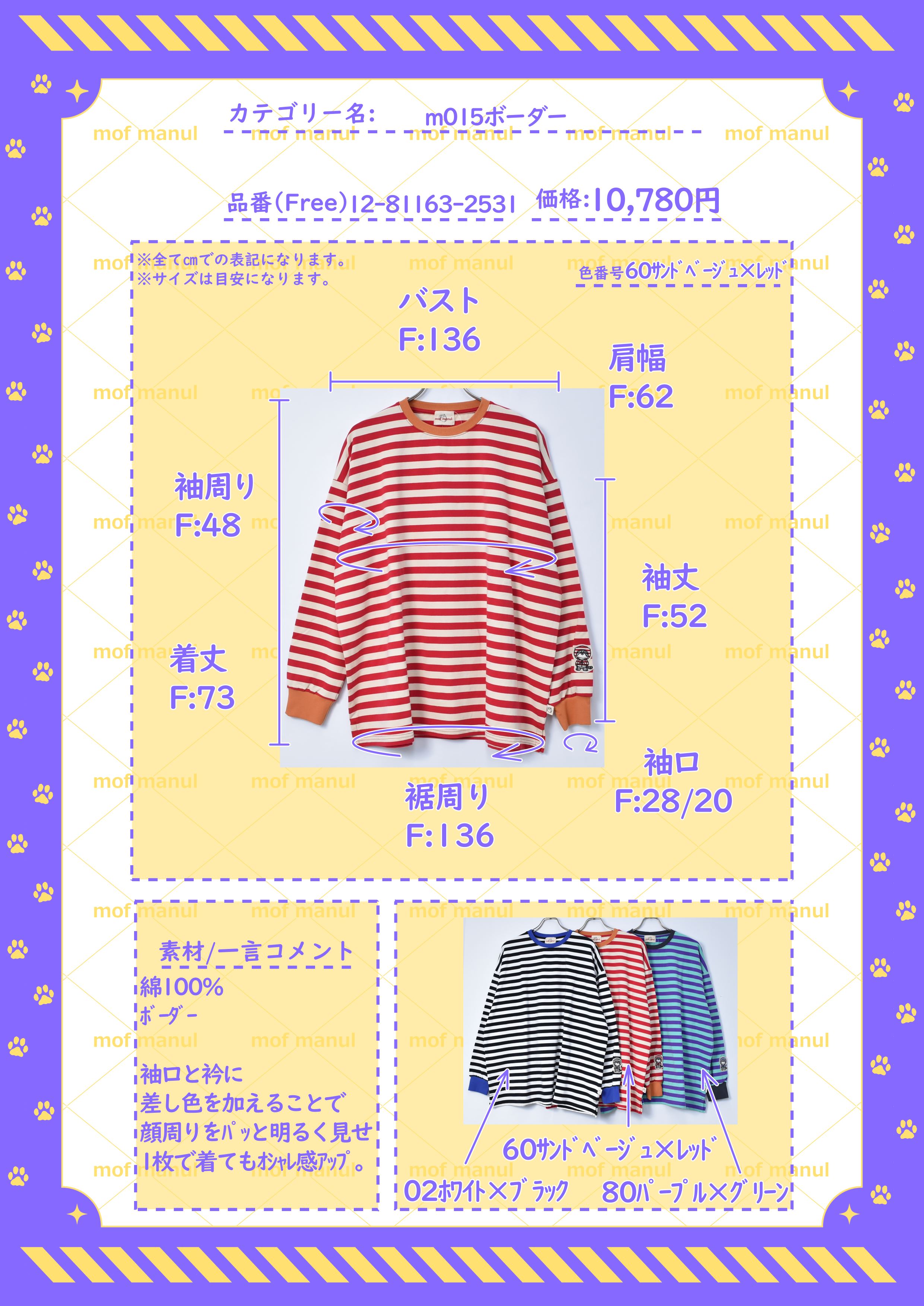【スウェット トレーナー】 リブ ボーダー トレーナー