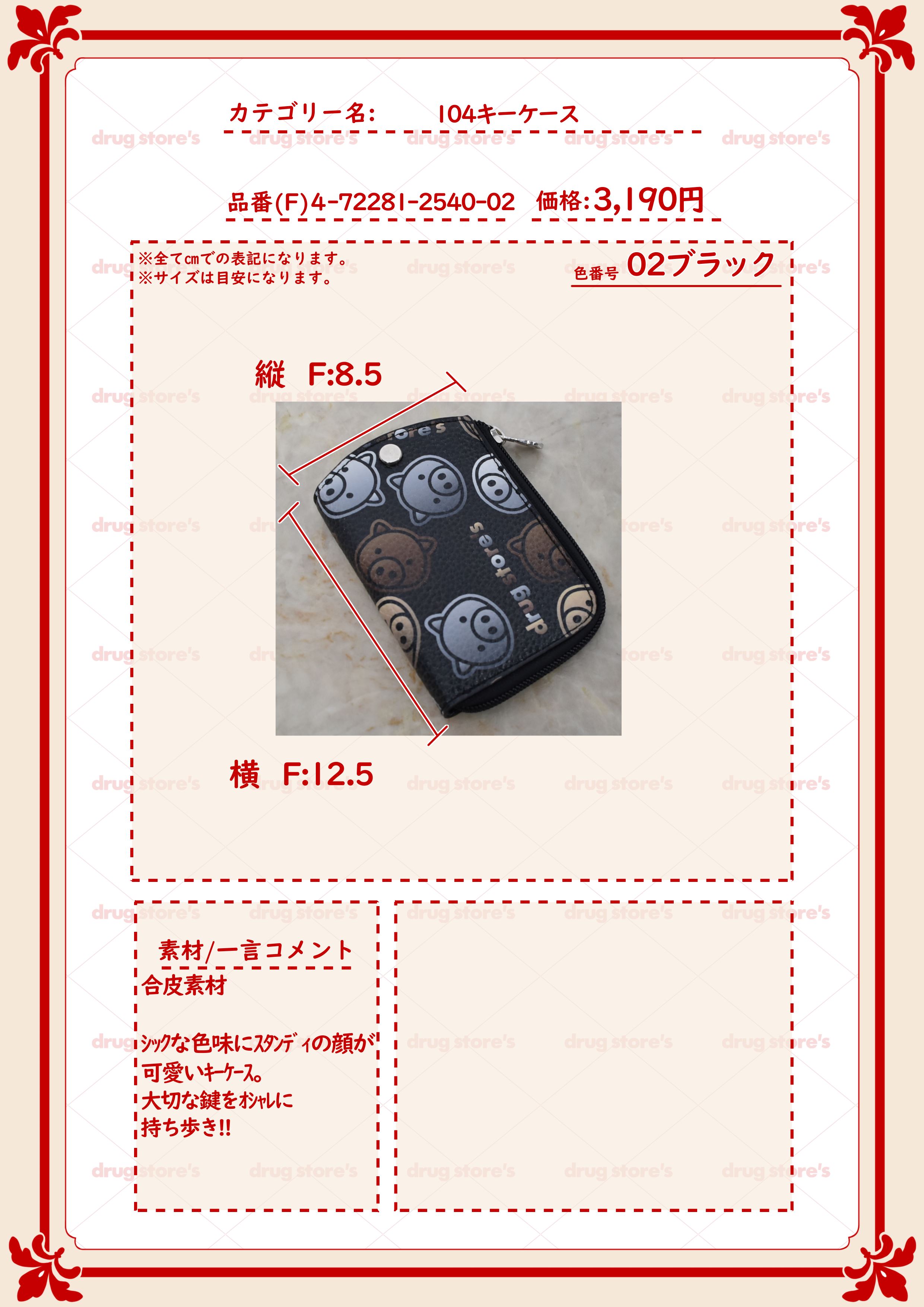 drug store's ブタ顔総柄 キーケース