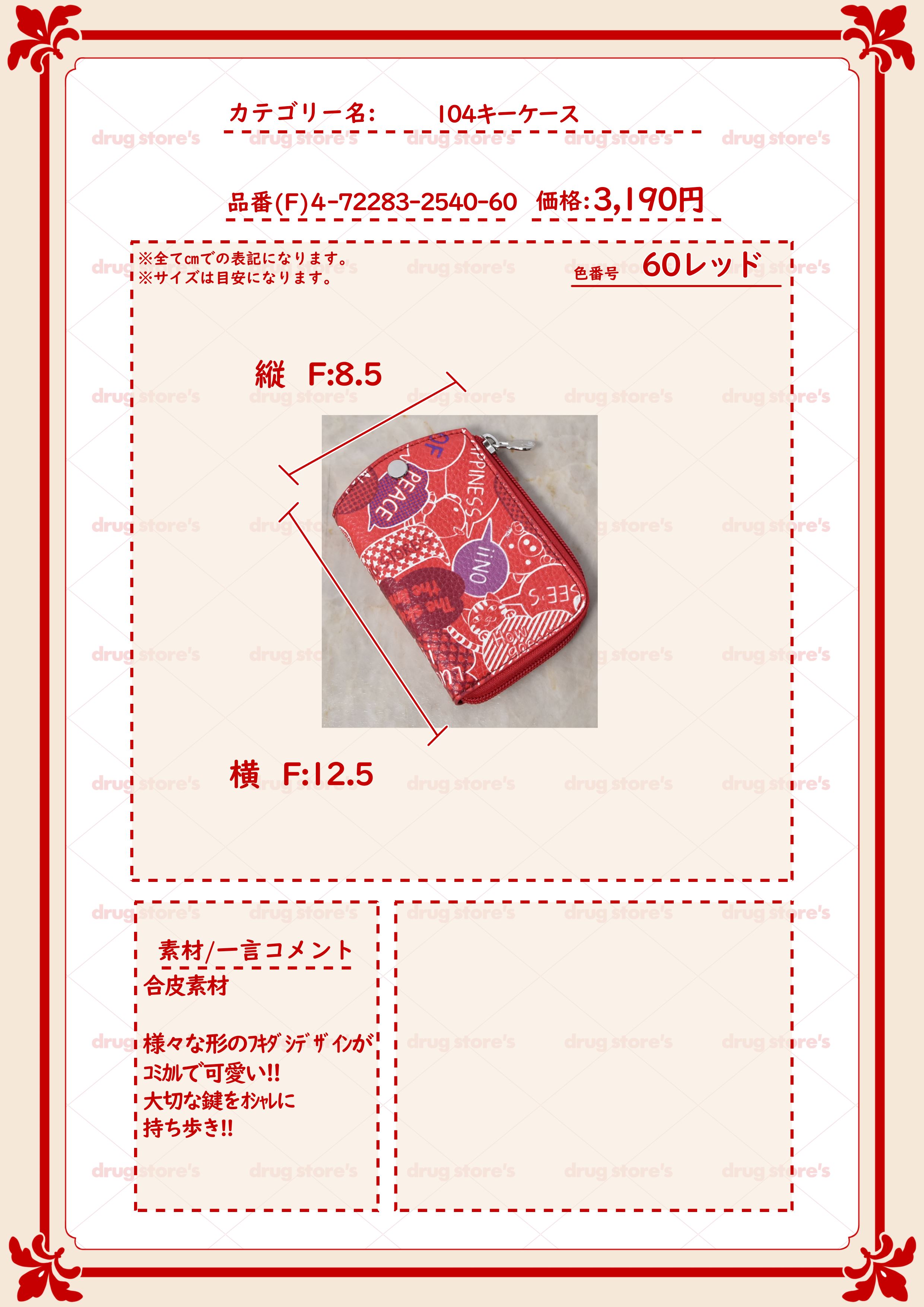 drug store's ブタ&ロゴ総柄 キーケース