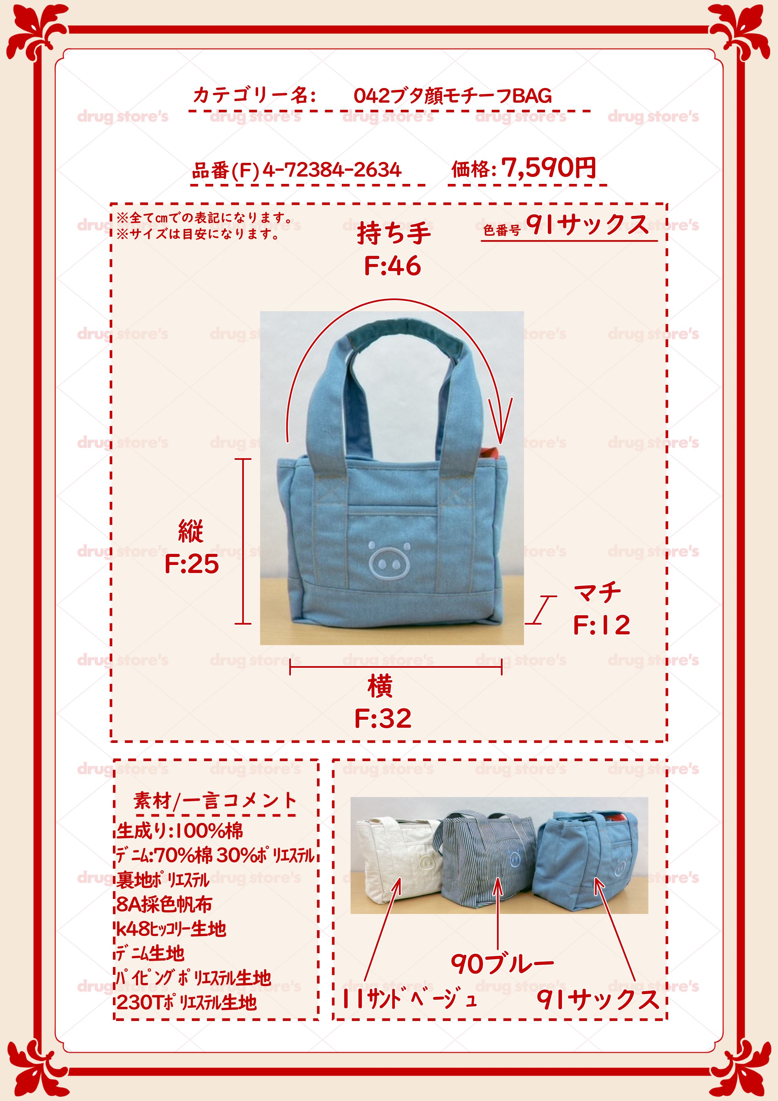 【トートバッグ】 ブタ顔 ミニ トートバッグ