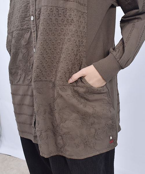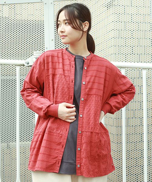 D.S.CLUB 別布切替 スタンドカラー シャツ