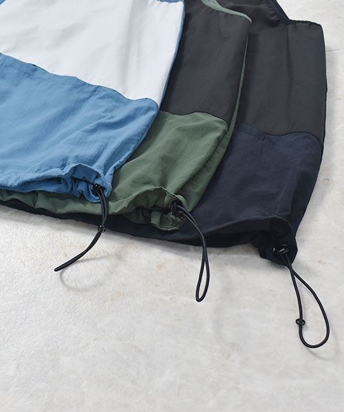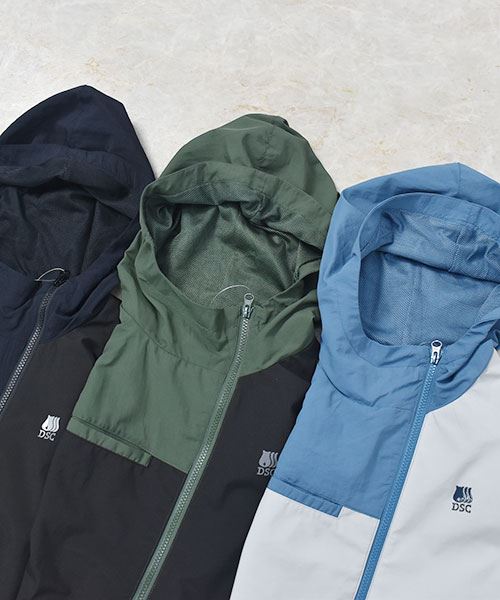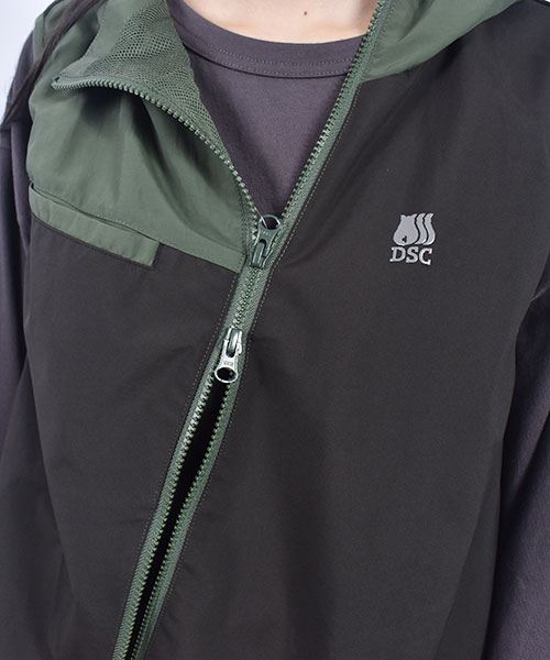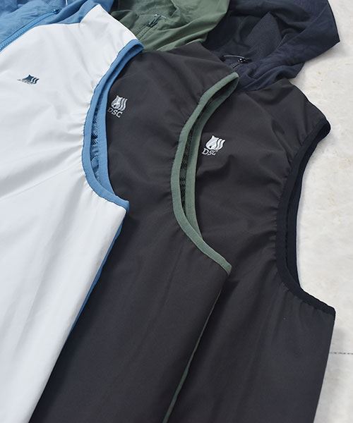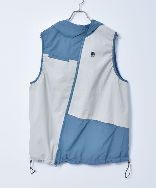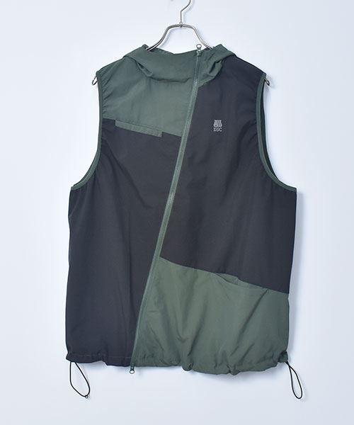 D.S.CLUB 配色 アシンメトリー フードつき 撥水加工ベスト
