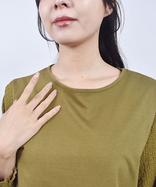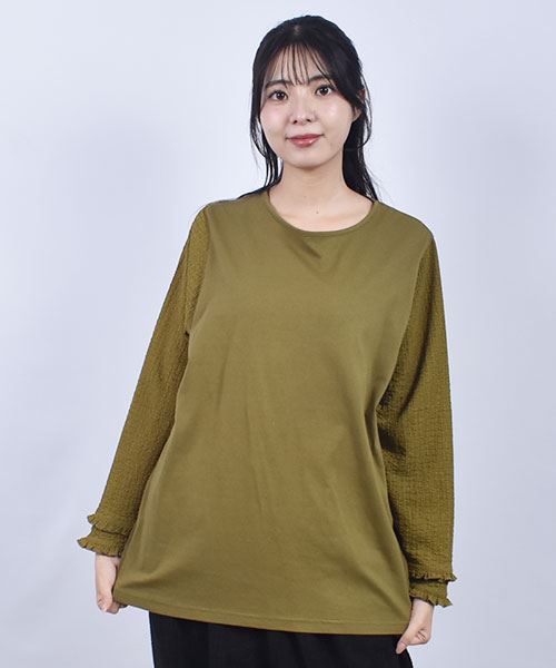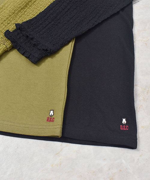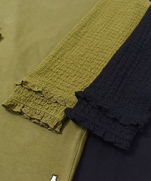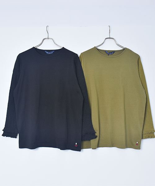 D.S.CLUB 天竺 袖シャーリング 袖口フリル ロンT