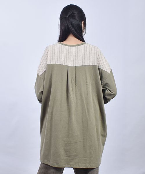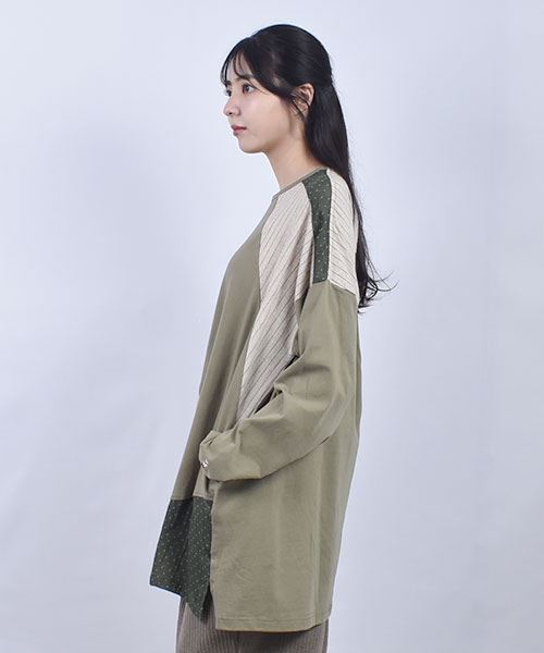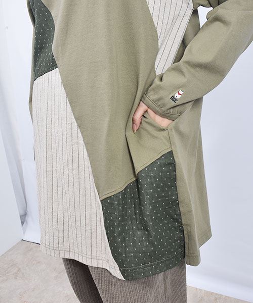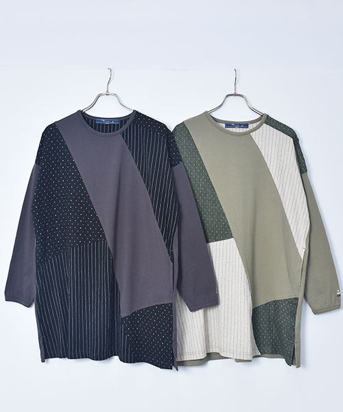 D.S.CLUB 天竺 水玉×ストライプ ハギハギ 切替 チュニック