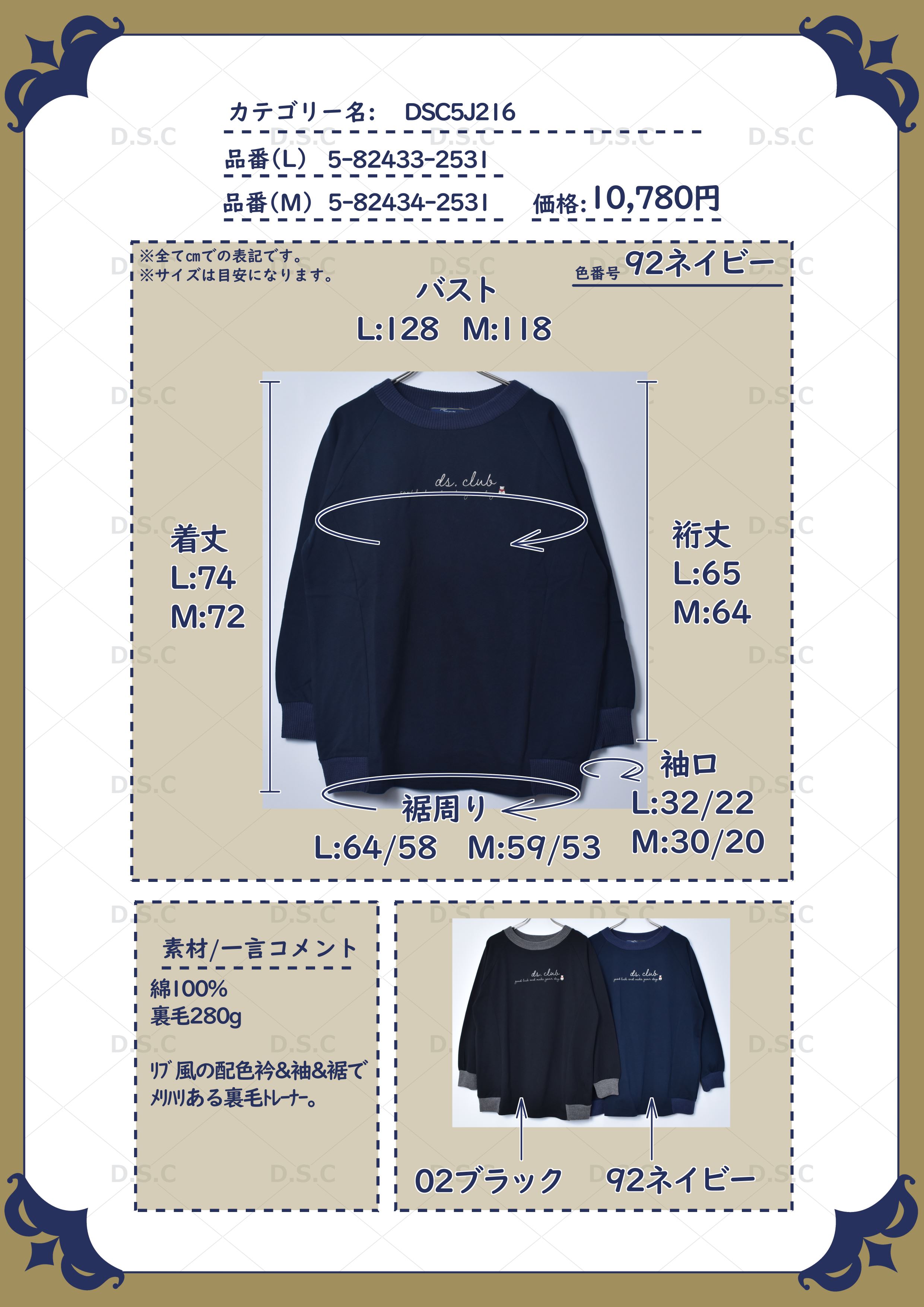 D.S.CLUB 裏毛 ロゴ刺繍 ラグラン トレーナー